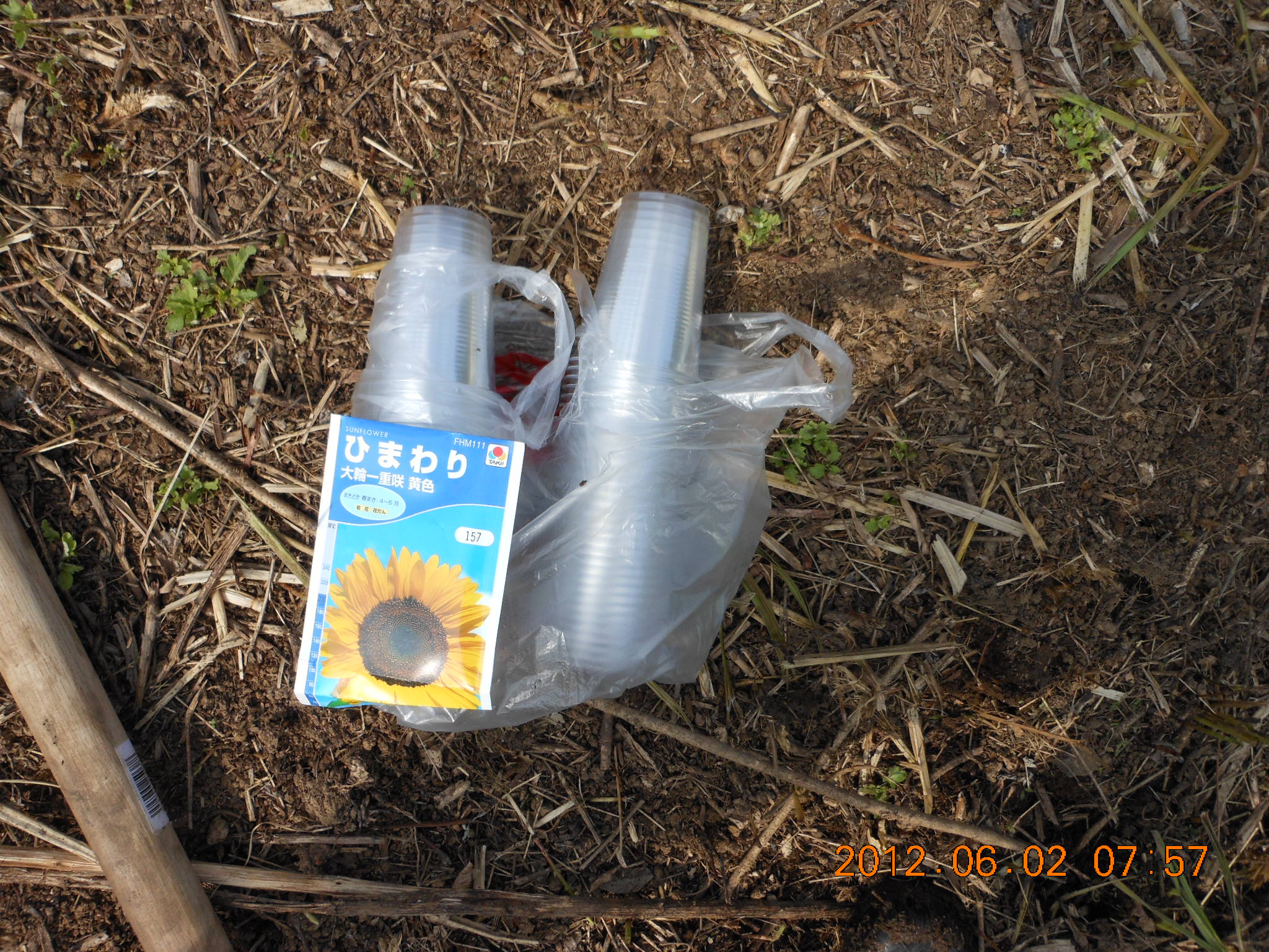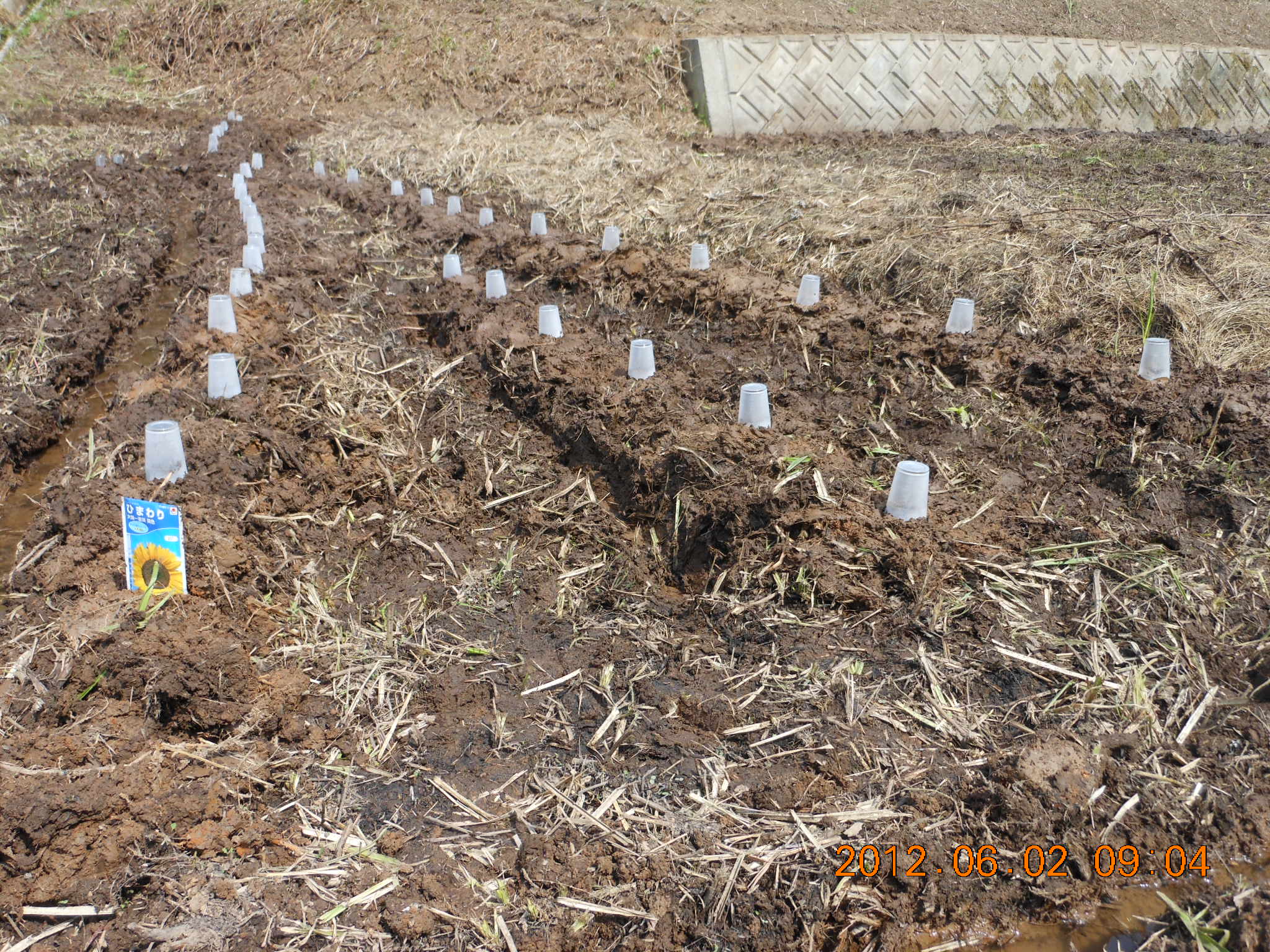 ひまわりの播種とトンボのヤゴ 2012-06-02