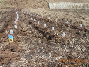 株間50センチでクリアカップの底に穴を開けてかぶせました。