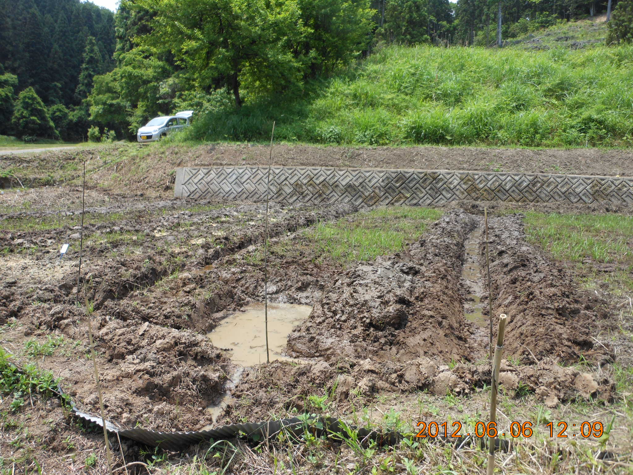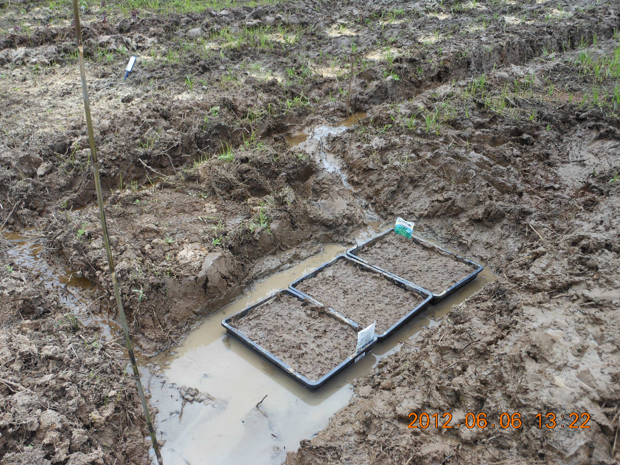穴水1号圃場でエンツァイの播種 2012-06-06