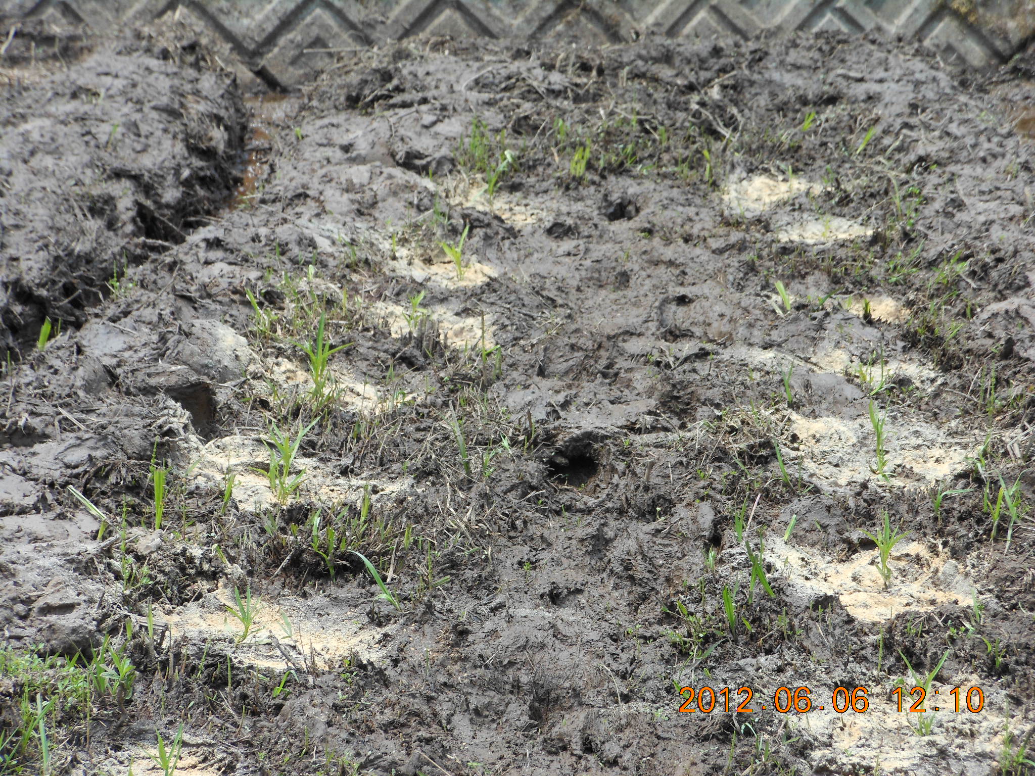 ぐちゃぐちゃの田んぼの土でも元気です。