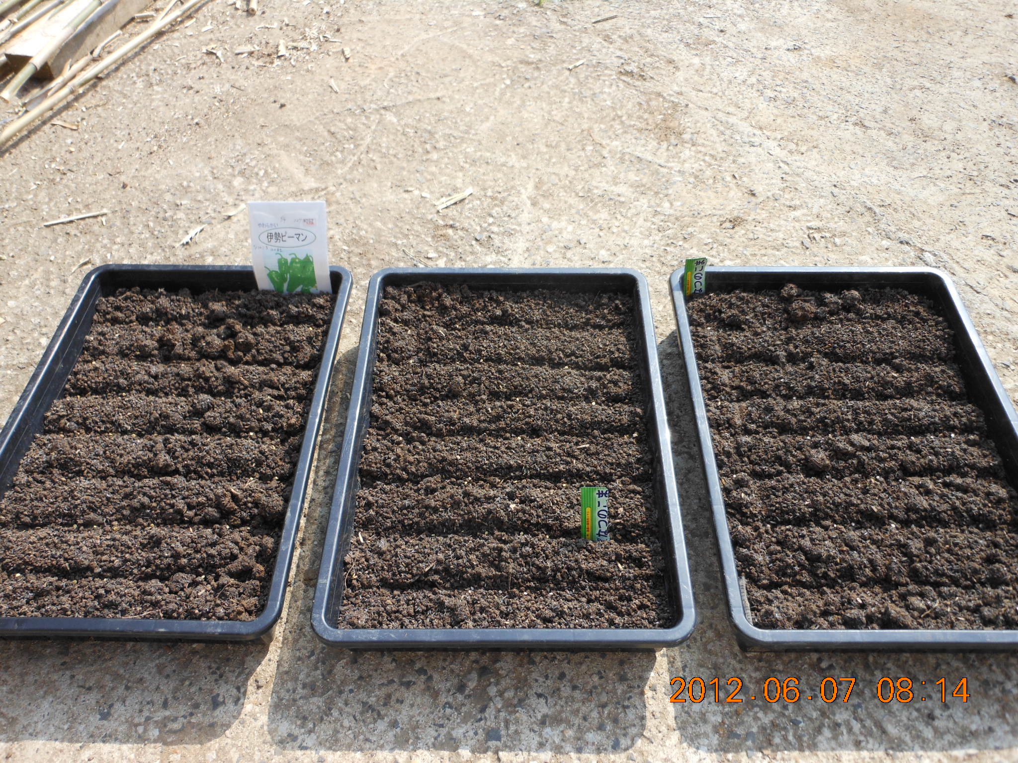 ジュース用トマト(なつのこま)と伊勢ピーマンの播種 2012-06-07