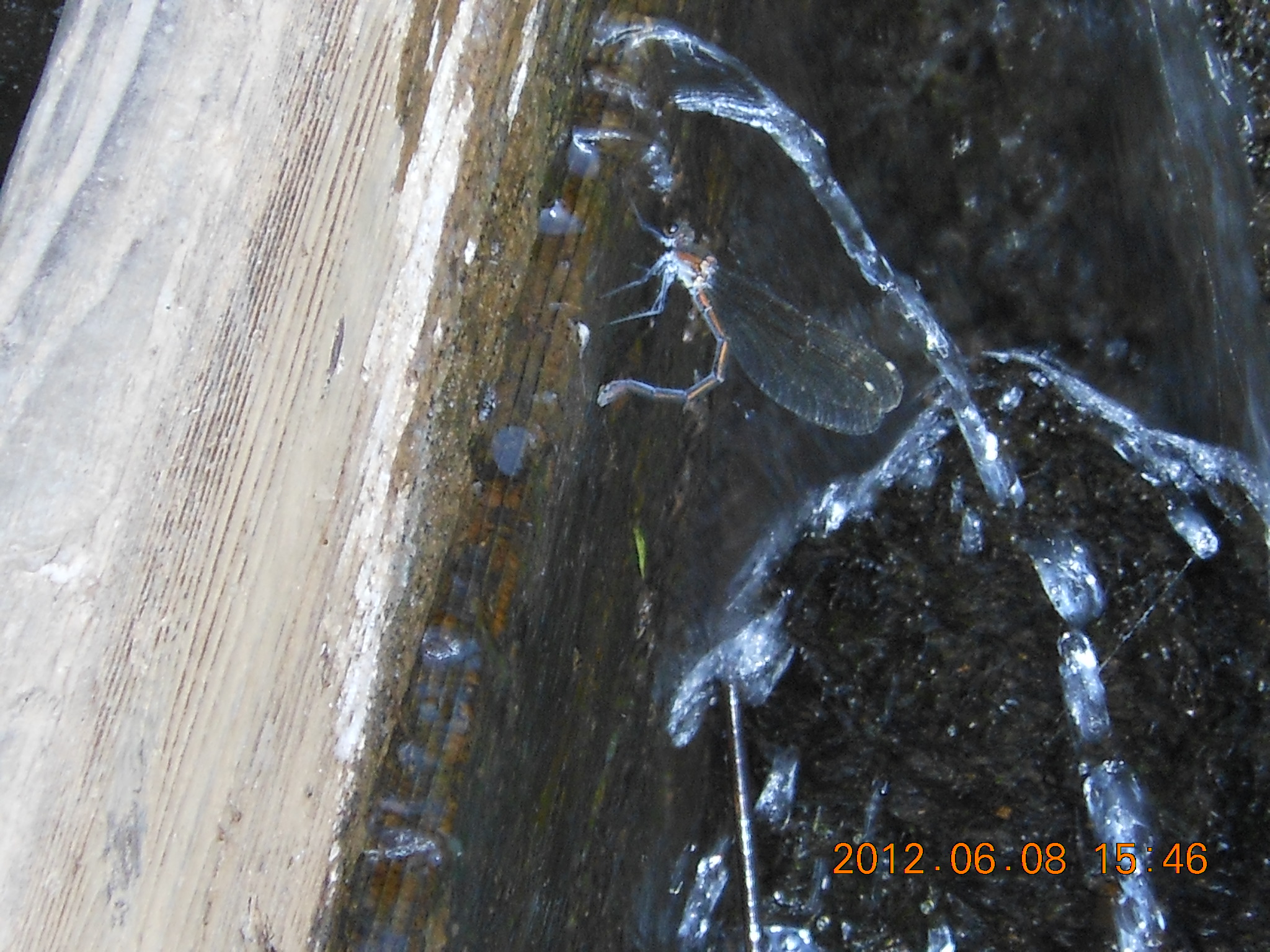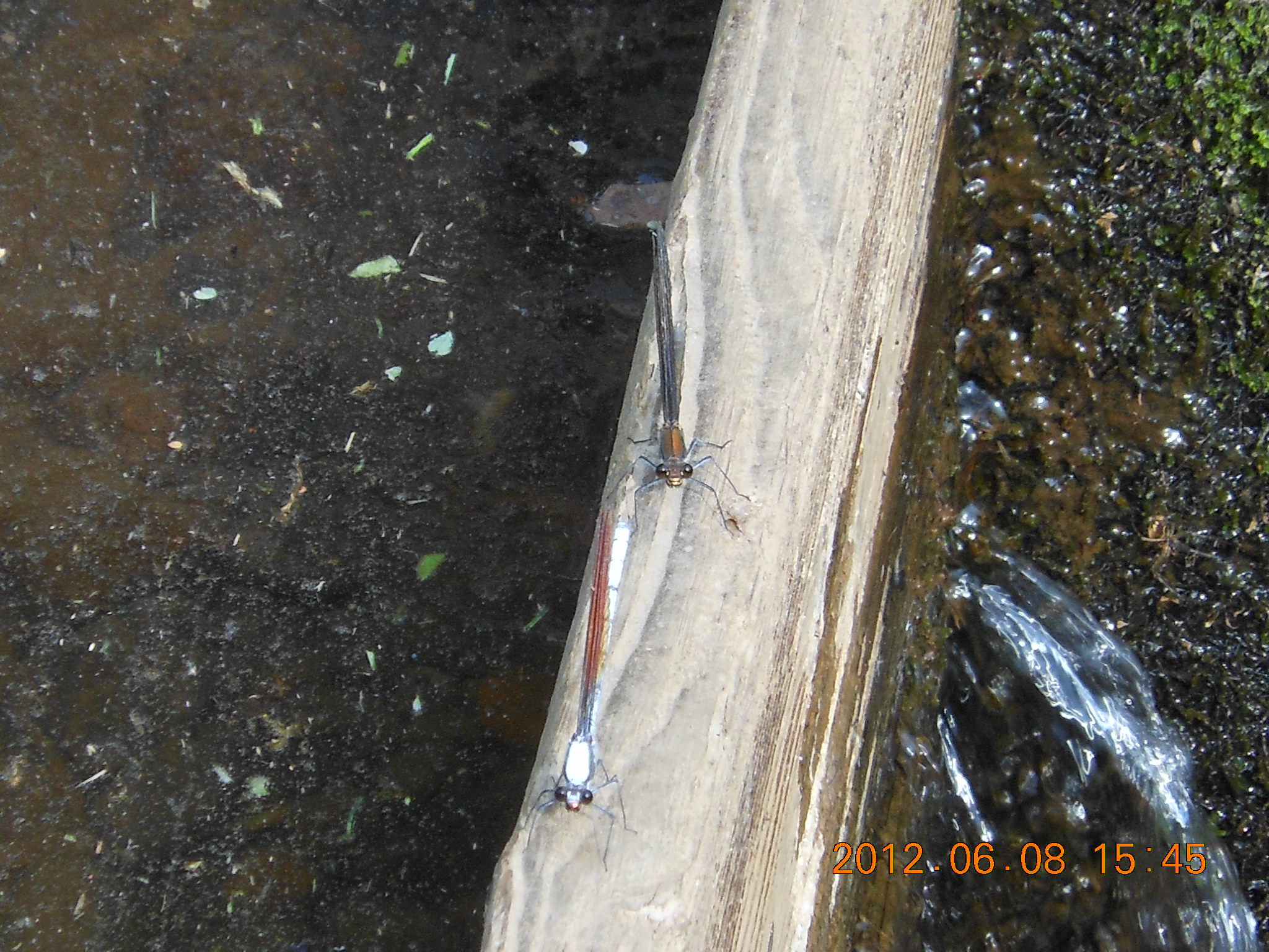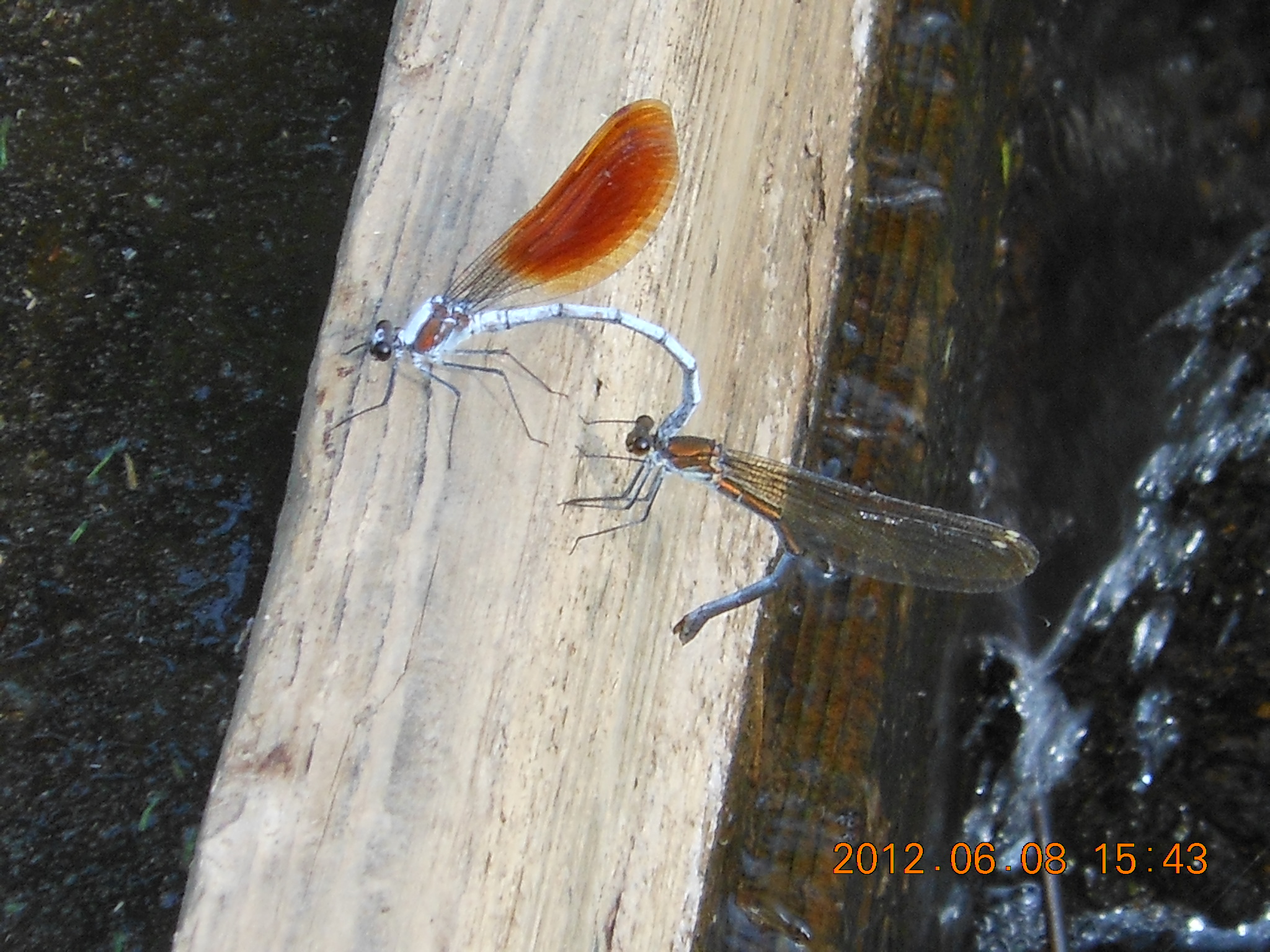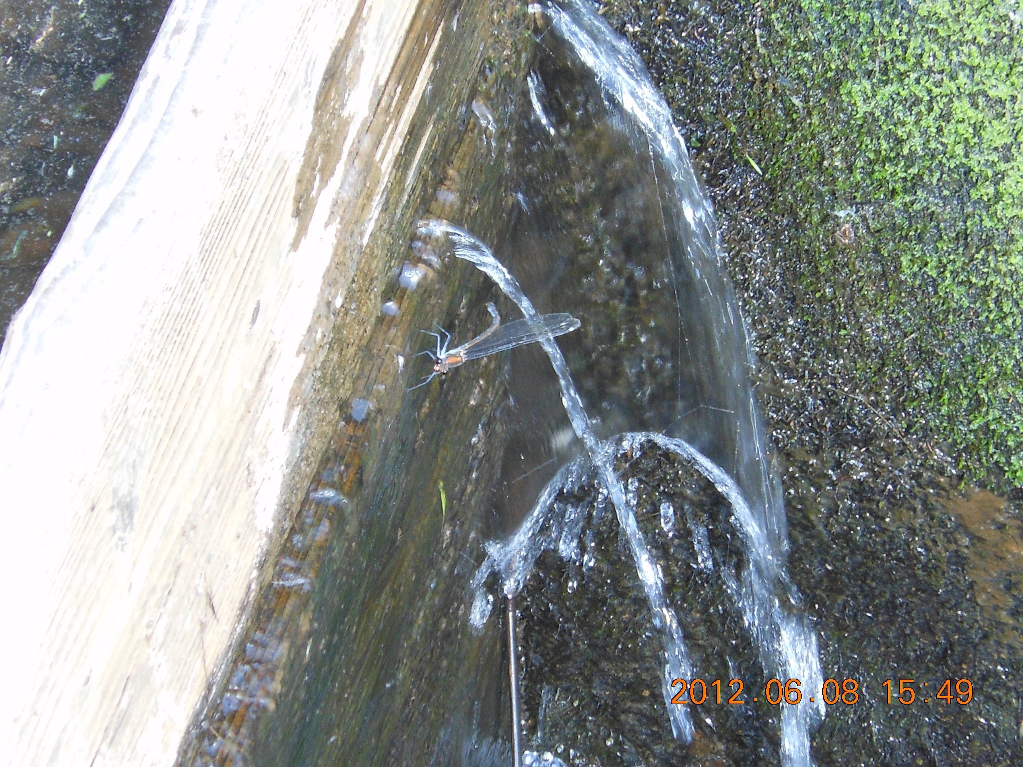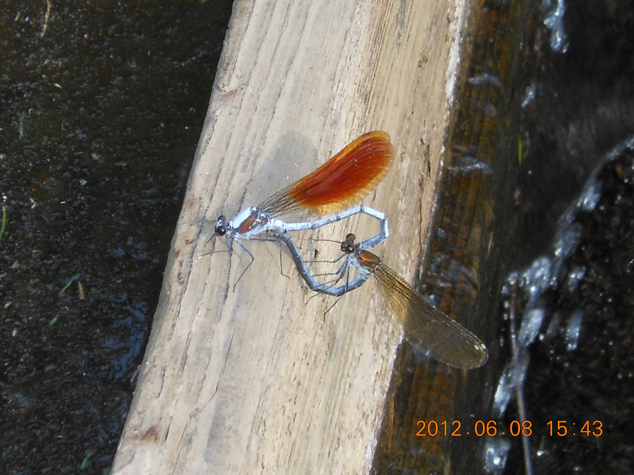 隣にある川の段差の板のところでニホンカワトンボが産卵をしてました。