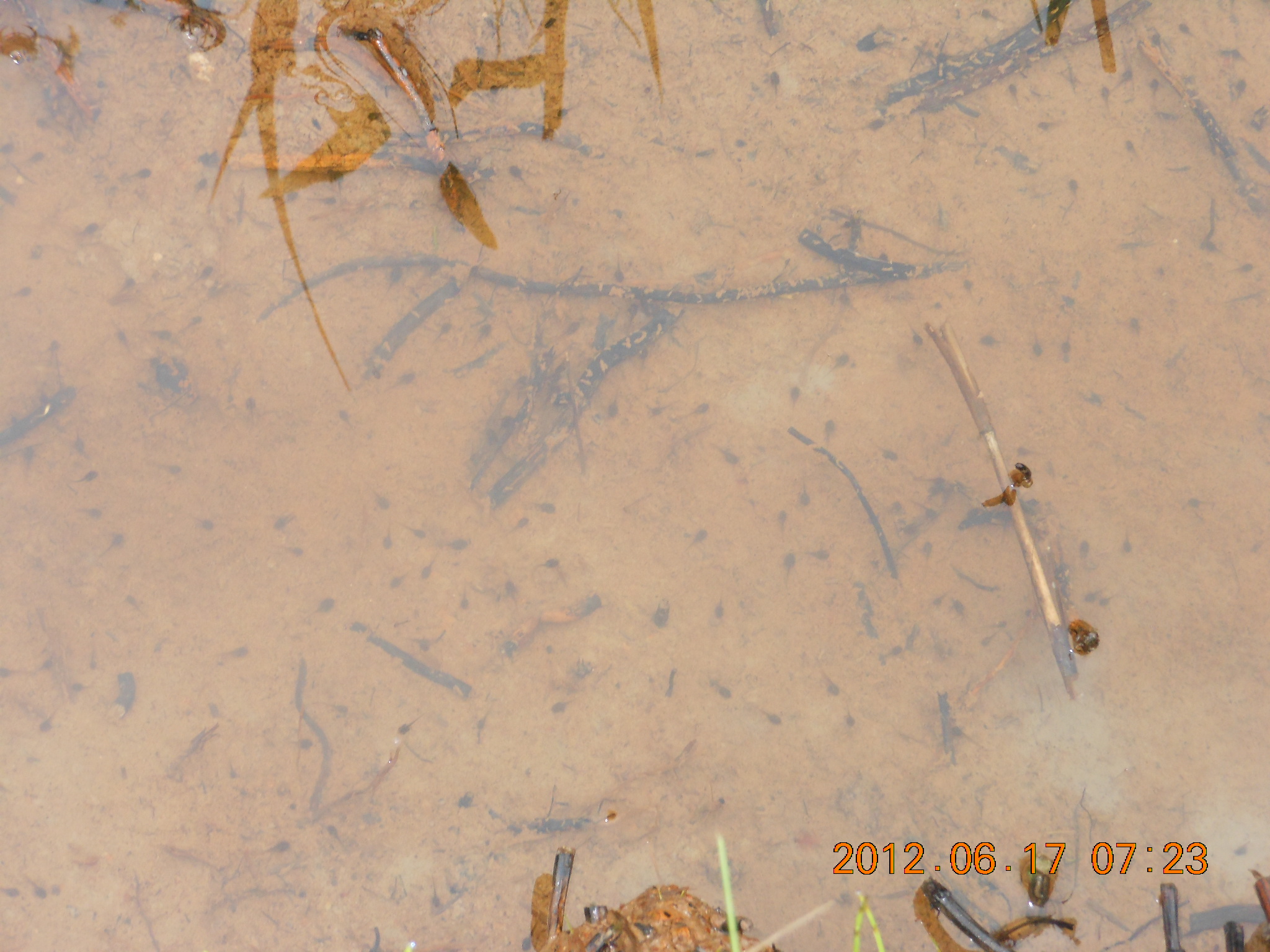 溝にはおたまじゃくしの姿がありました。