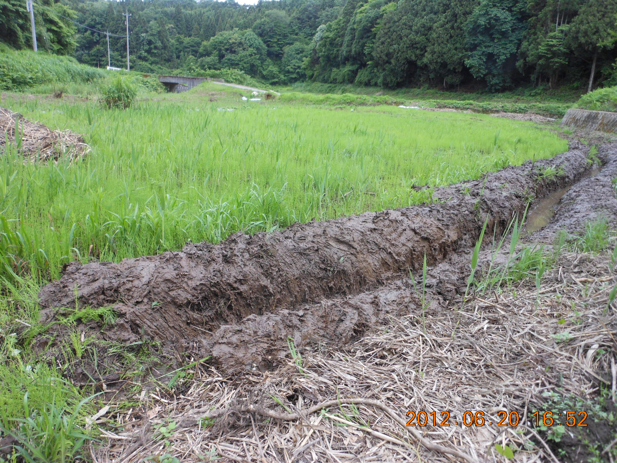 もう一枚の田んぼはあぜ沿いに縦に1本溝切りをすれば使えそうです。