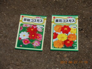 畝立てをしないので株間を50センチくらいとって3粒まきです。