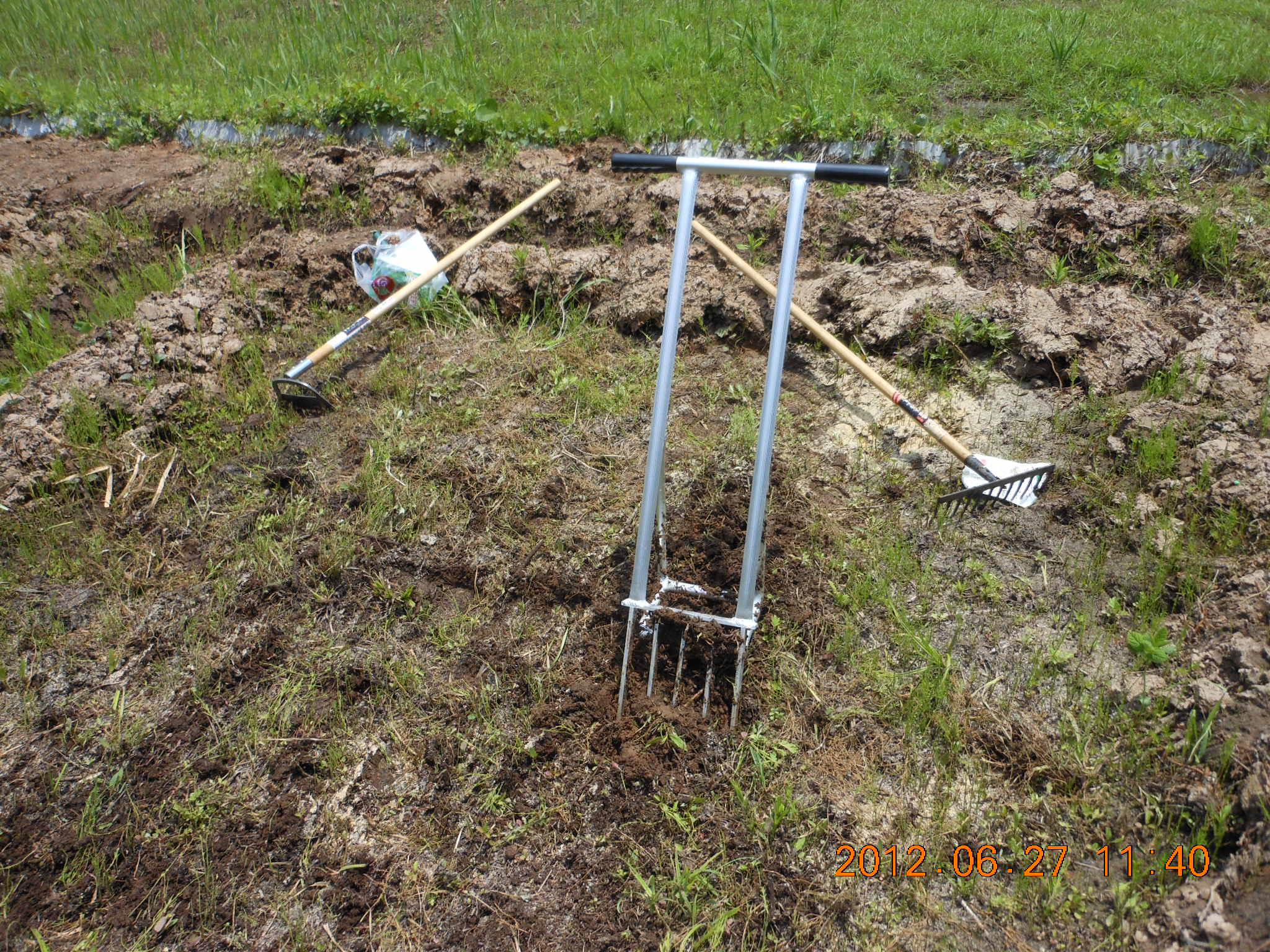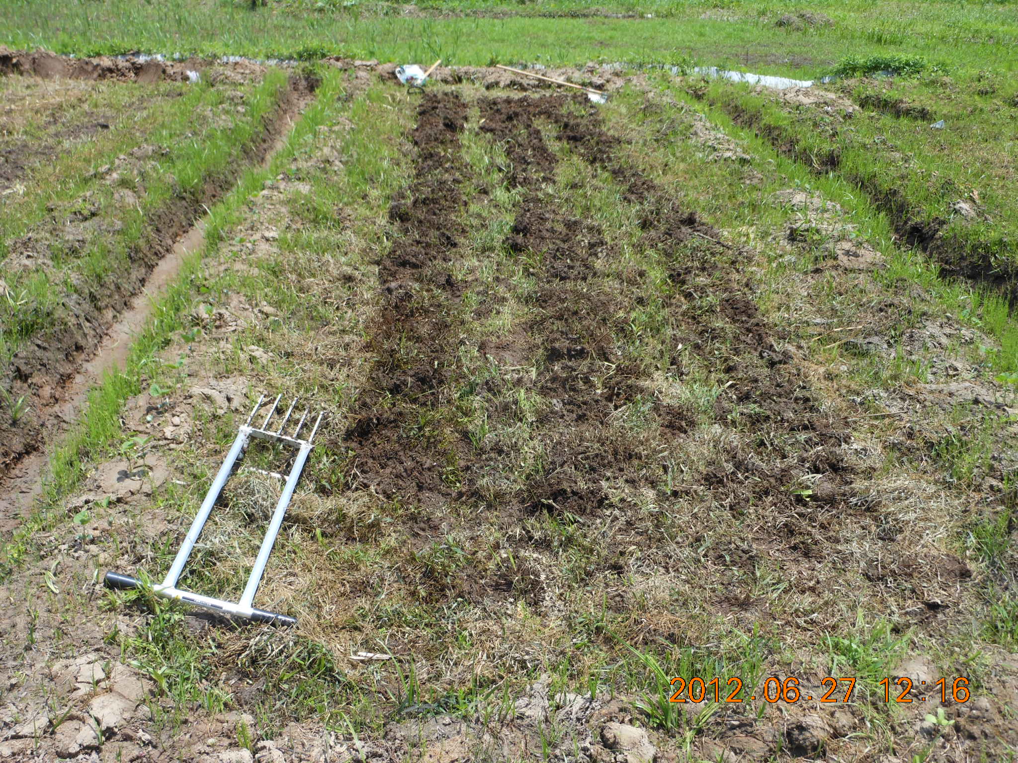 地面が柔らかいので雑草の根や株を土起こし機をねじって