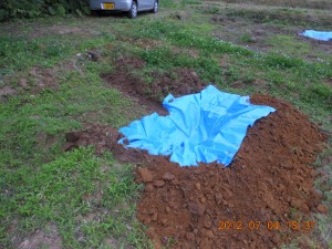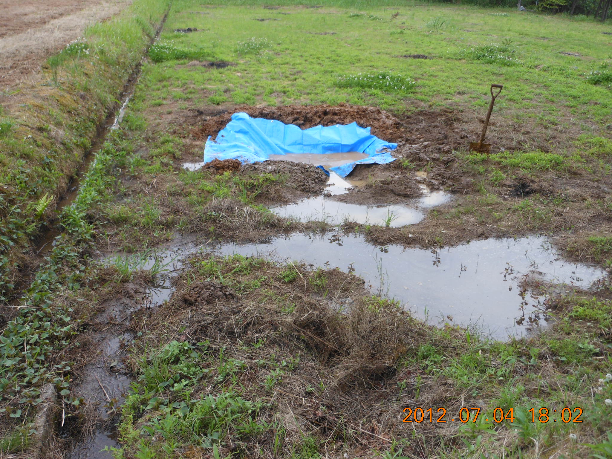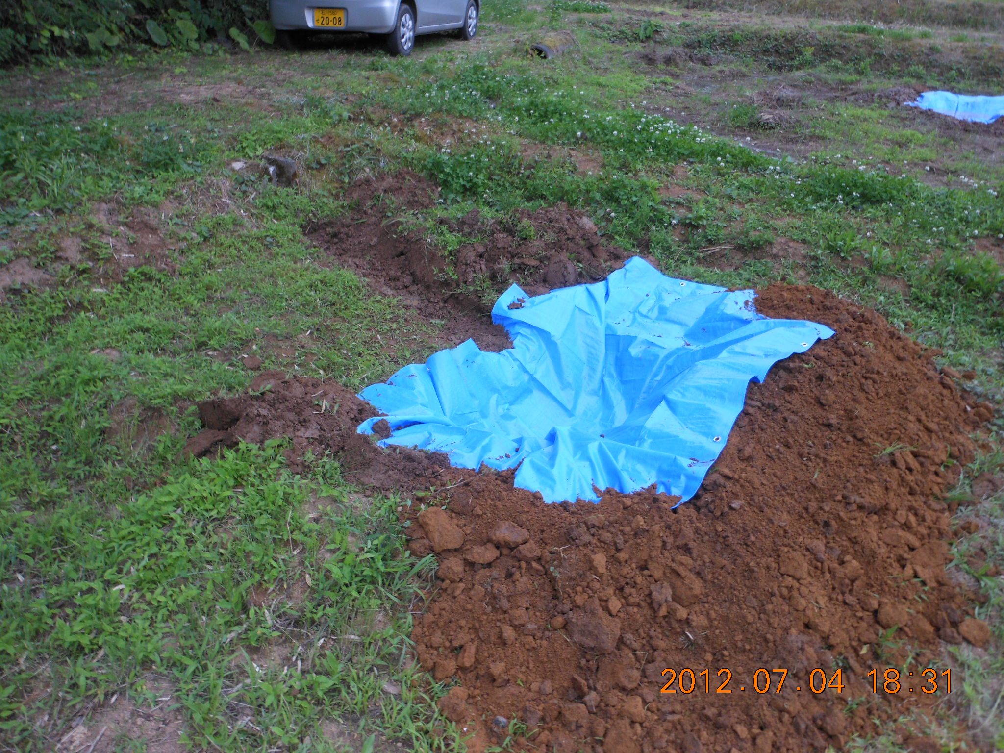 2012年7月5日 / 最終更新日時 : 2019年9月10日 shimasakimitsunori 日々是好日 貯水タンクの値段が高いので 2012-07-04 地面に穴を掘ってビニールシートをかぶせました。 これでもある程度、水は貯められると思います。 2号圃場の2枚の休耕田に作成しました。 あとは落とし穴にならないように安全対策をするだけです。 FacebookXBlueskyHatenaCopy コメントを残す コメントをキャンセルメールアドレスが公開されることはありません。 ※ が付いている欄は必須項目ですコメント ※ 名前 ※ メール ※ サイト 次回のコメントで使用するためブラウザーに自分の名前、メールアドレス、サイトを保存する。 上に表示された文字を入力してください。 Δ