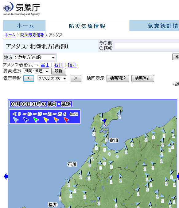 風向データも調べましたが、能登空港、門前、志賀方向から風が来ています。