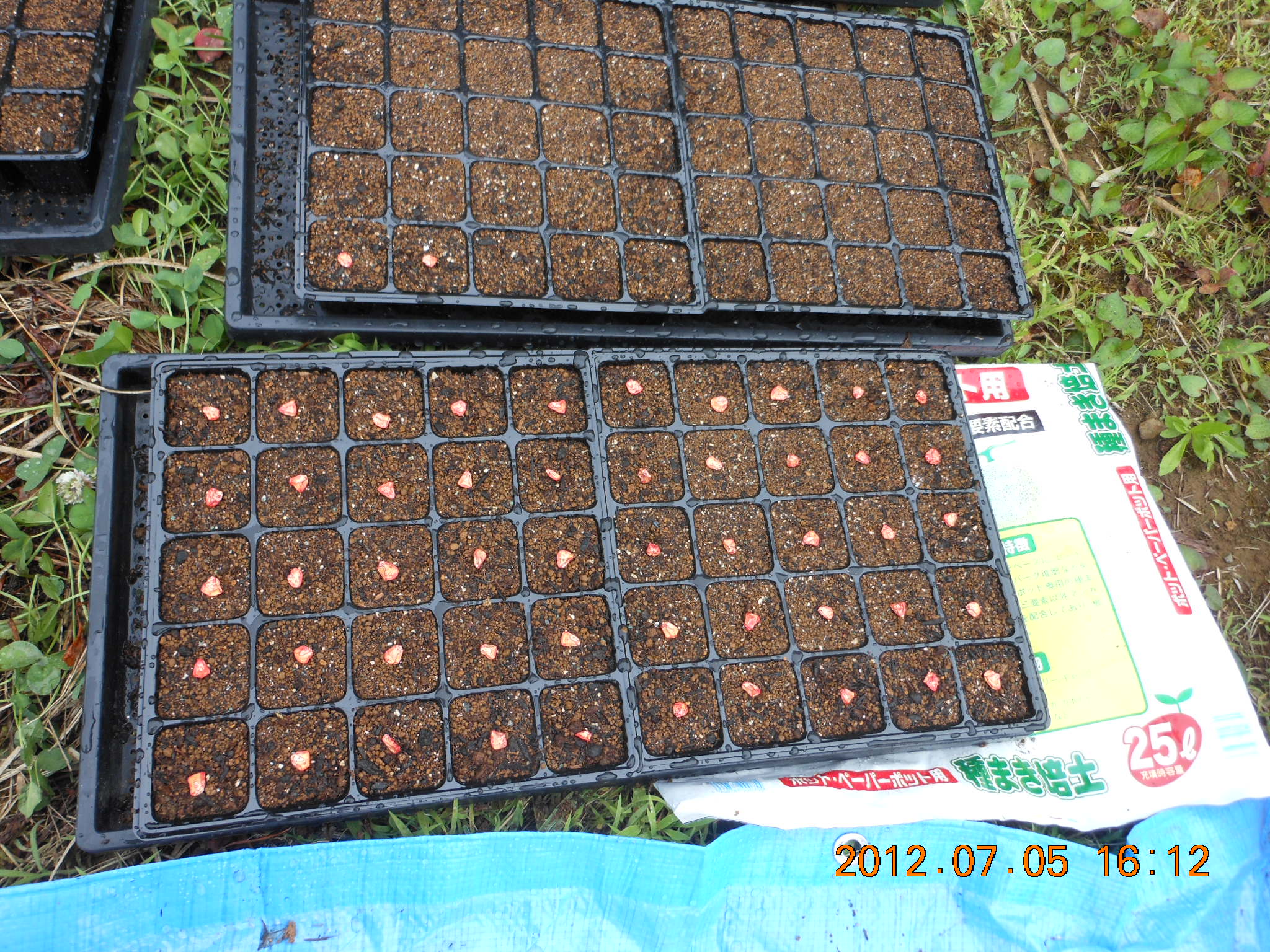土の量が少ないので発芽したら大苗になるまで育てないで早い時期に移植します。