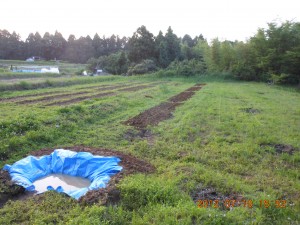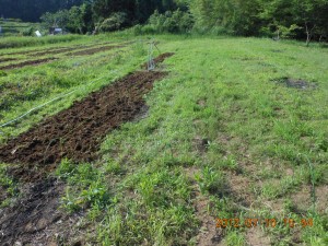 穴水2号ほ場で畝作り 2012-07-10