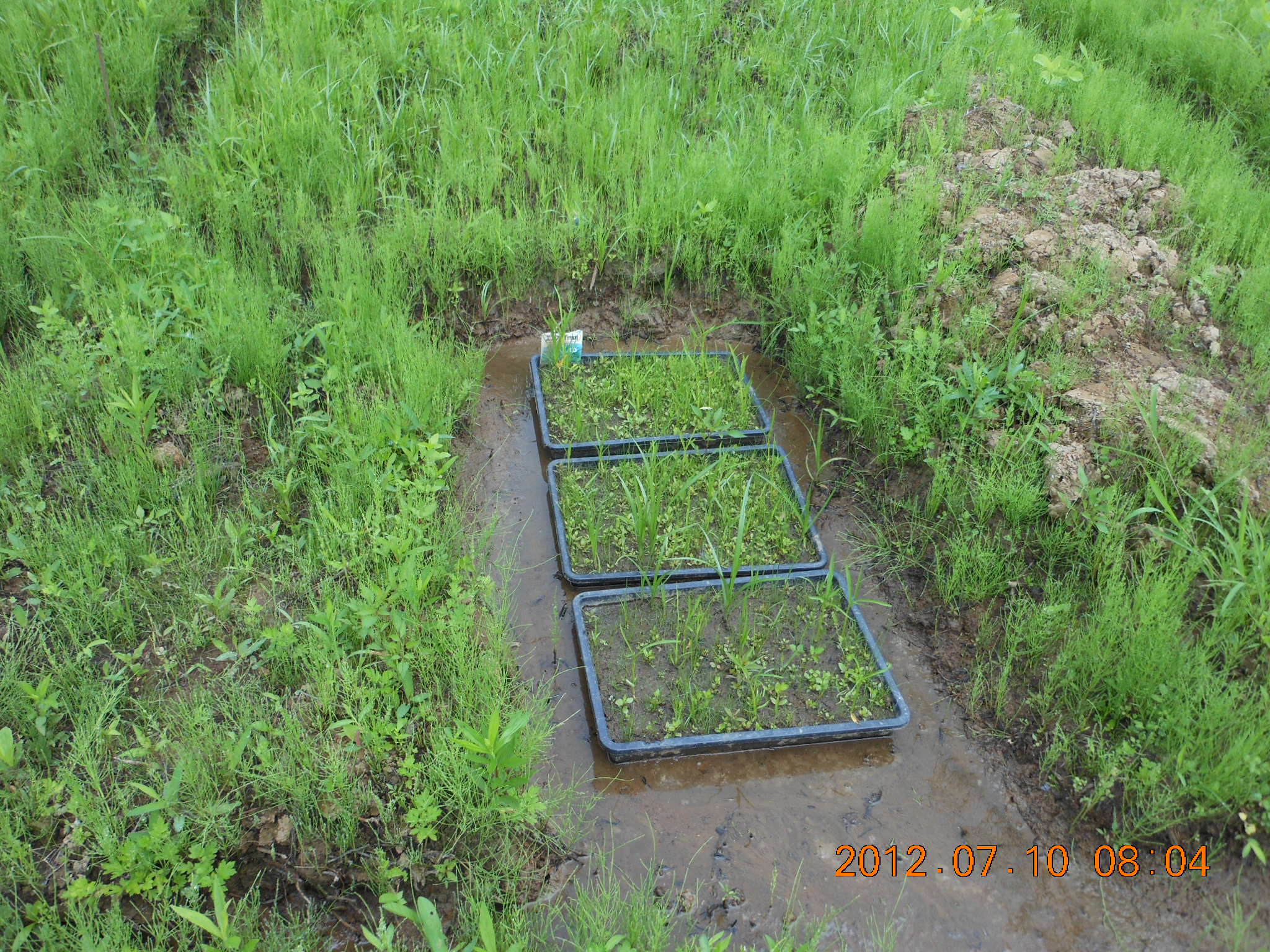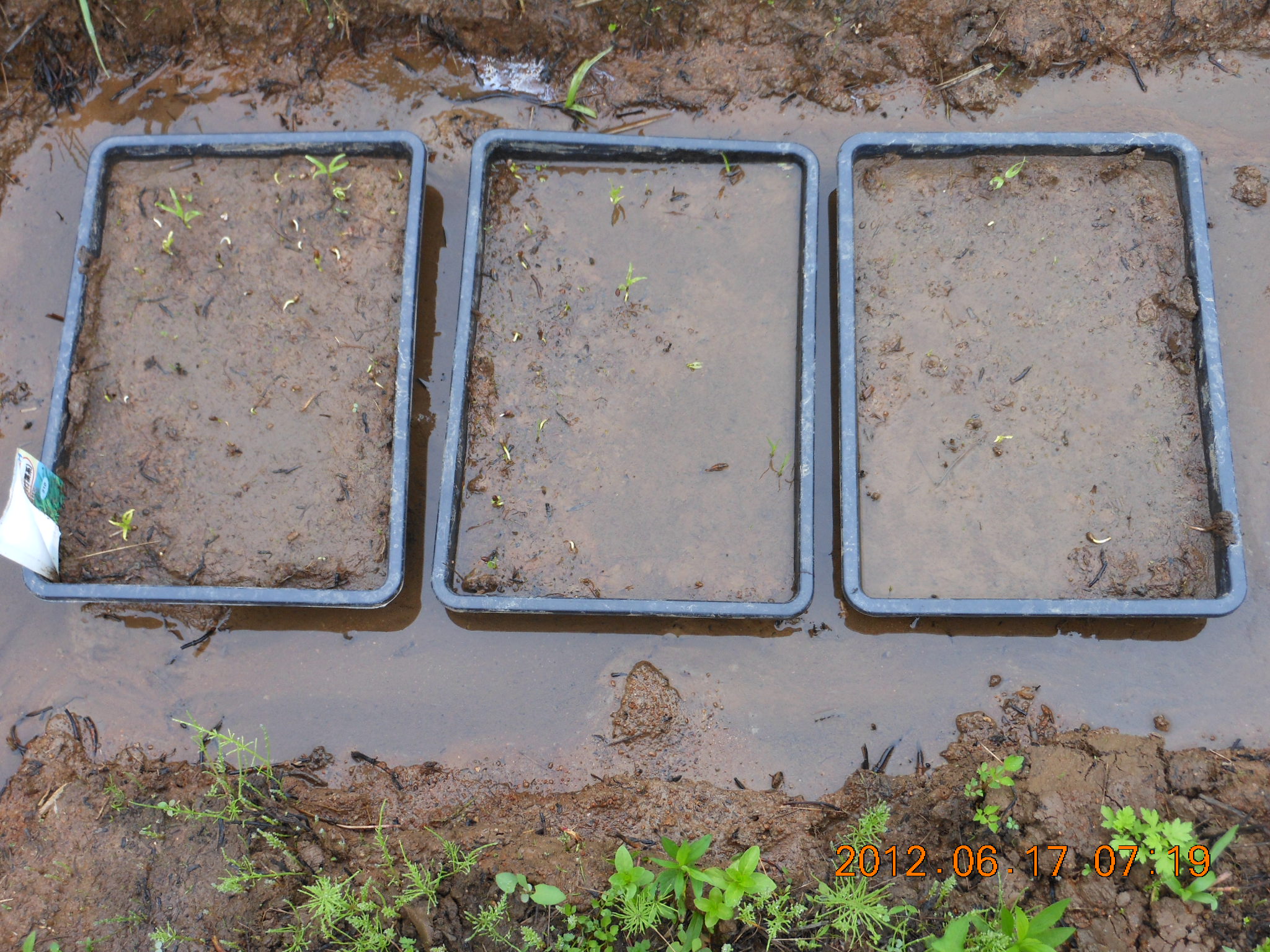 休耕田の土を入れただけのトレイの中で放置してました。