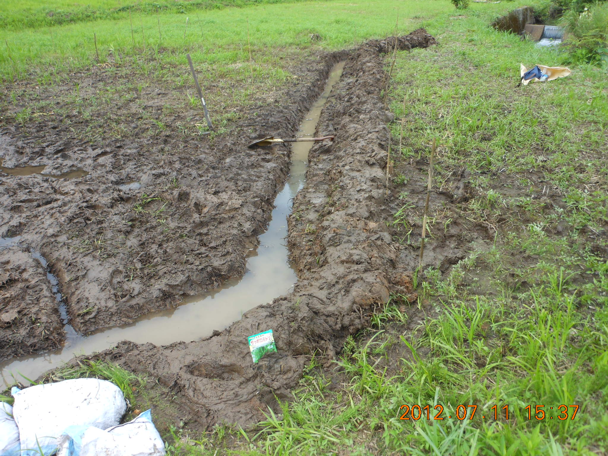 場所はエンツァイを定植したところの溝を切ったときにできた土の上です。