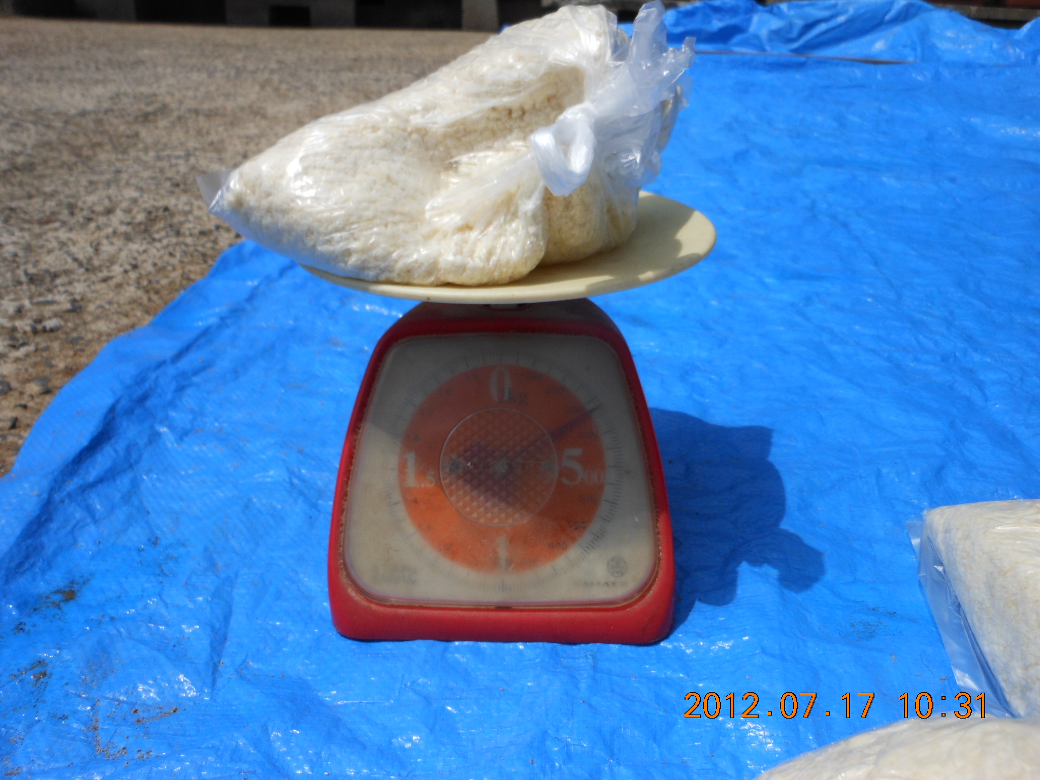 できたばかりの牛ふんボカシを10キロくらい(戻しボカシといいます)です。