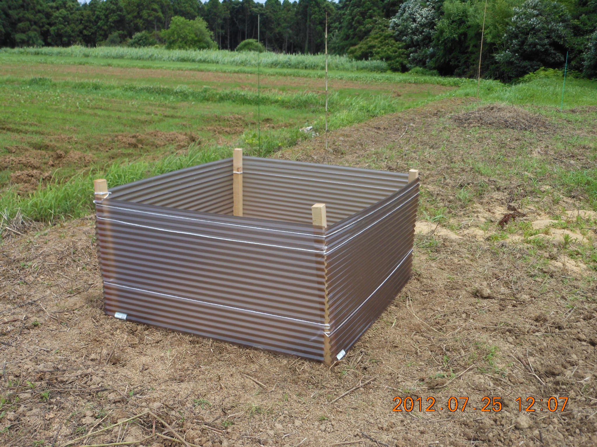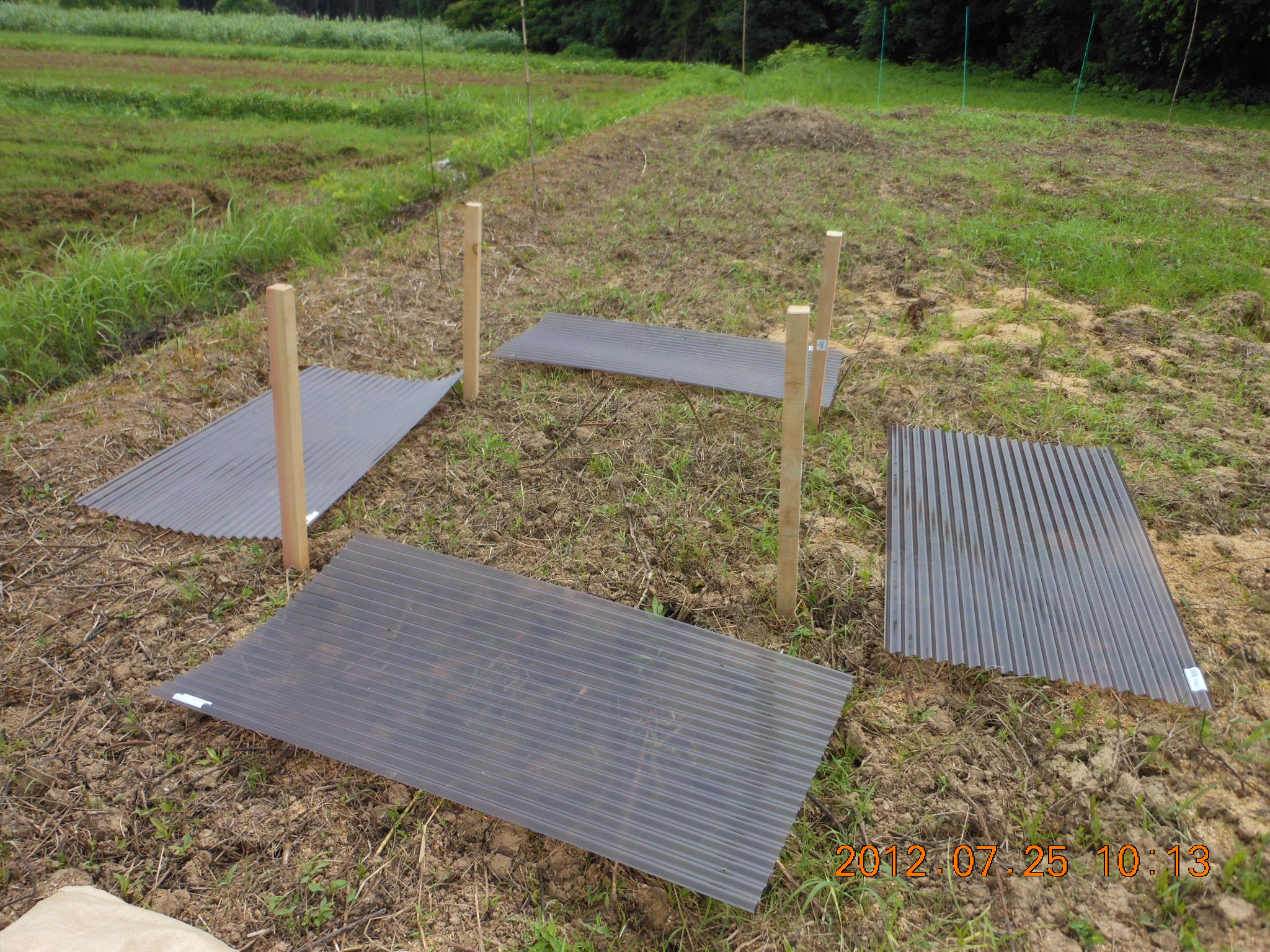 それで3号圃場で4尺寸(120センチメートル)のポリカーボネート板を使って枠を作りました。