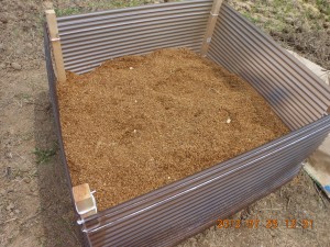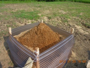 最下層に「もみ殻」と「米ぬか」と「発酵米ぬか」を混ぜ込みました。