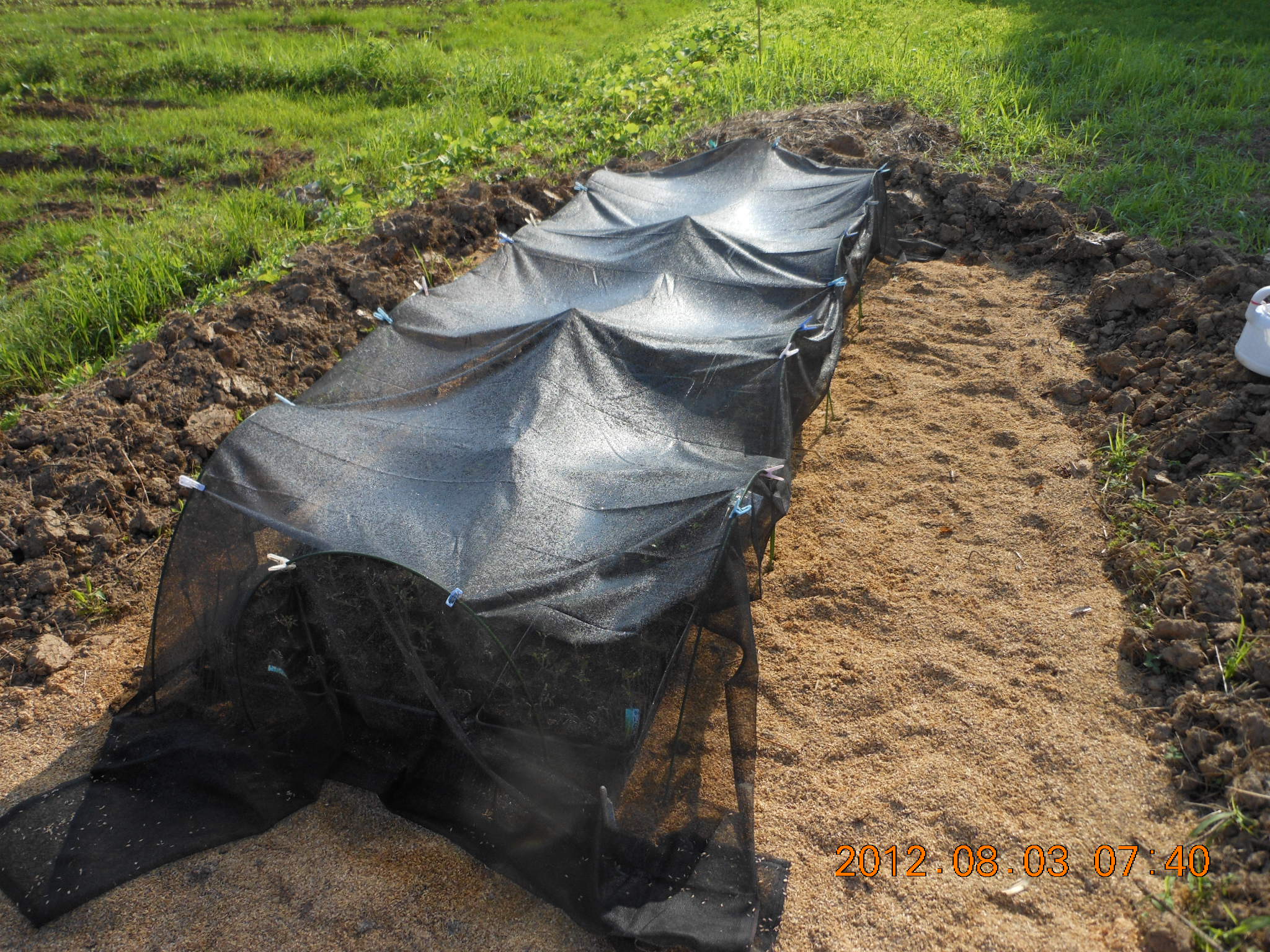 2012年8月4日 / 最終更新日時 : 2019年9月10日 shimasakimitsunori 日々是好日 寒冷紗をかけた効果は 2012-08-03 少しはあったような気がします。 寒冷紗の真ん中が沈むので棒を立てておきました。 溝に水がなかったから「たらい」と「じょうろ」で運搬です。 FacebookXBlueskyHatenaCopy コメントを残す コメントをキャンセルメールアドレスが公開されることはありません。 ※ が付いている欄は必須項目ですコメント ※ 名前 ※ メール ※ サイト 次回のコメントで使用するためブラウザーに自分の名前、メールアドレス、サイトを保存する。 上に表示された文字を入力してください。 Δ