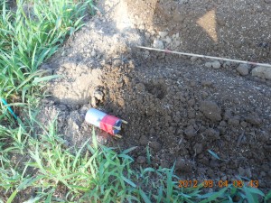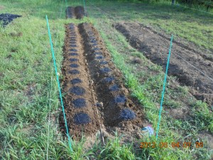 2号圃場で昨日の夕方に水をかけて湿らせておいた