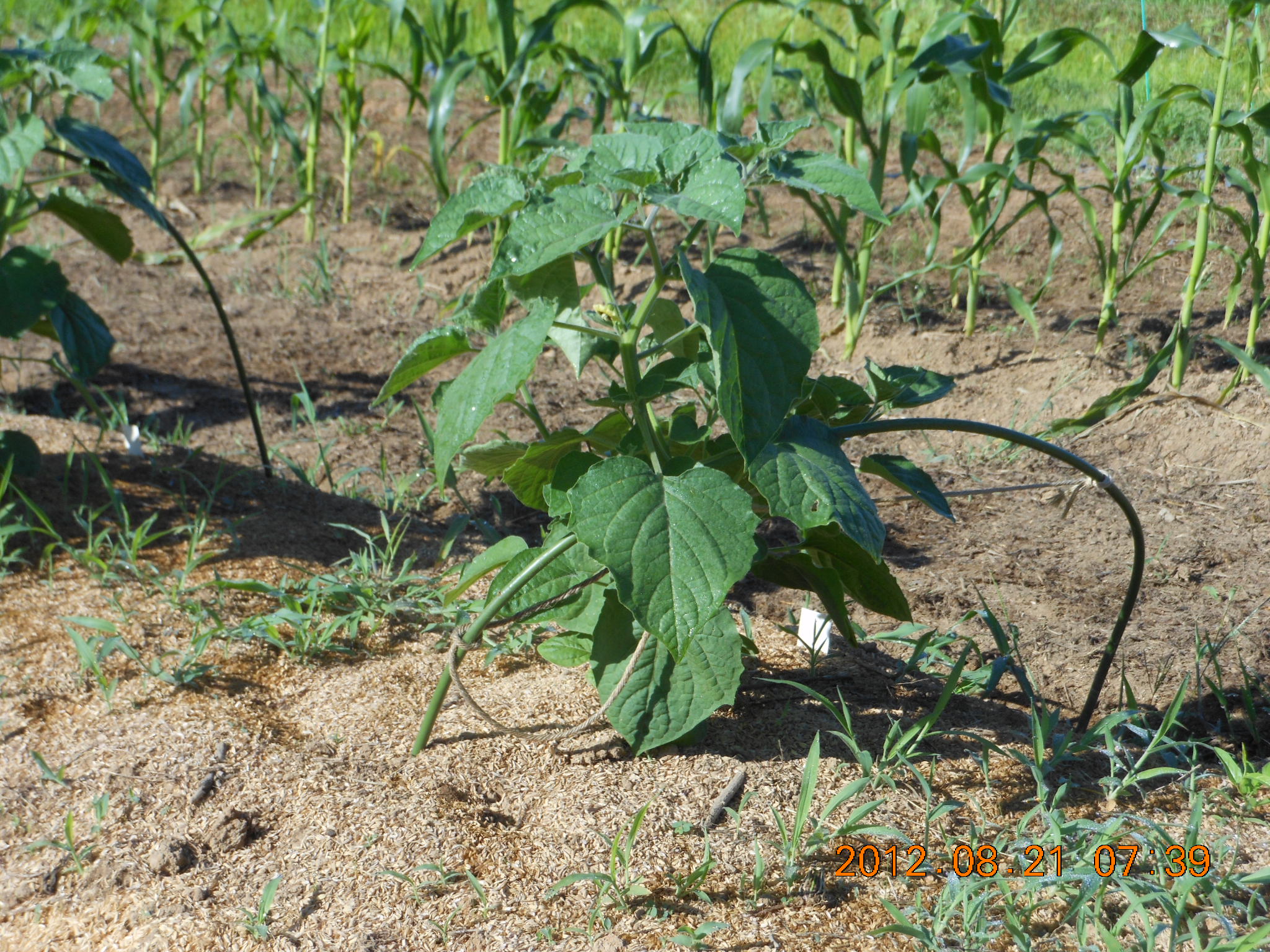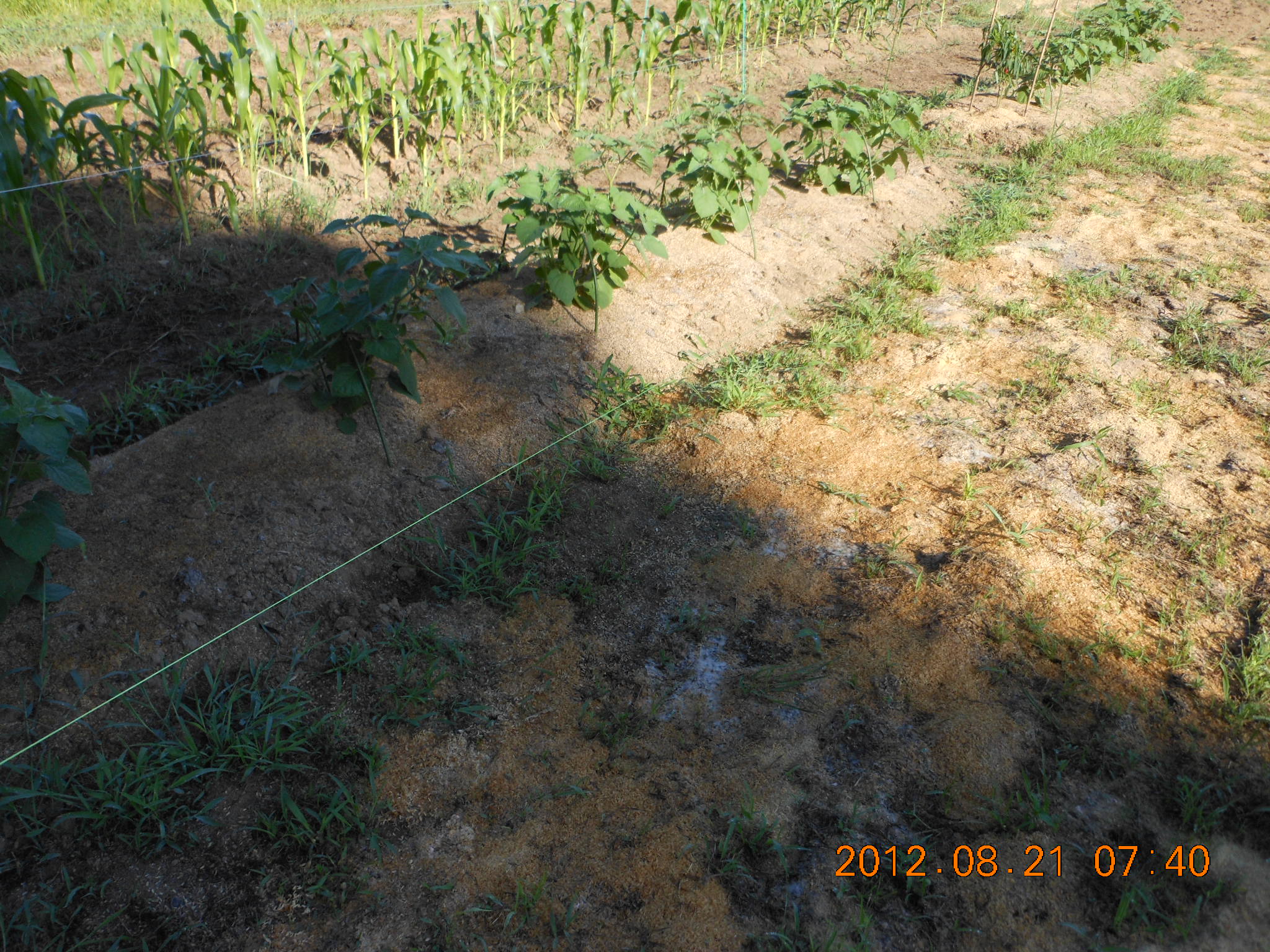 2号圃場のとうもろこしと食用ほおずきにかけてみました。
