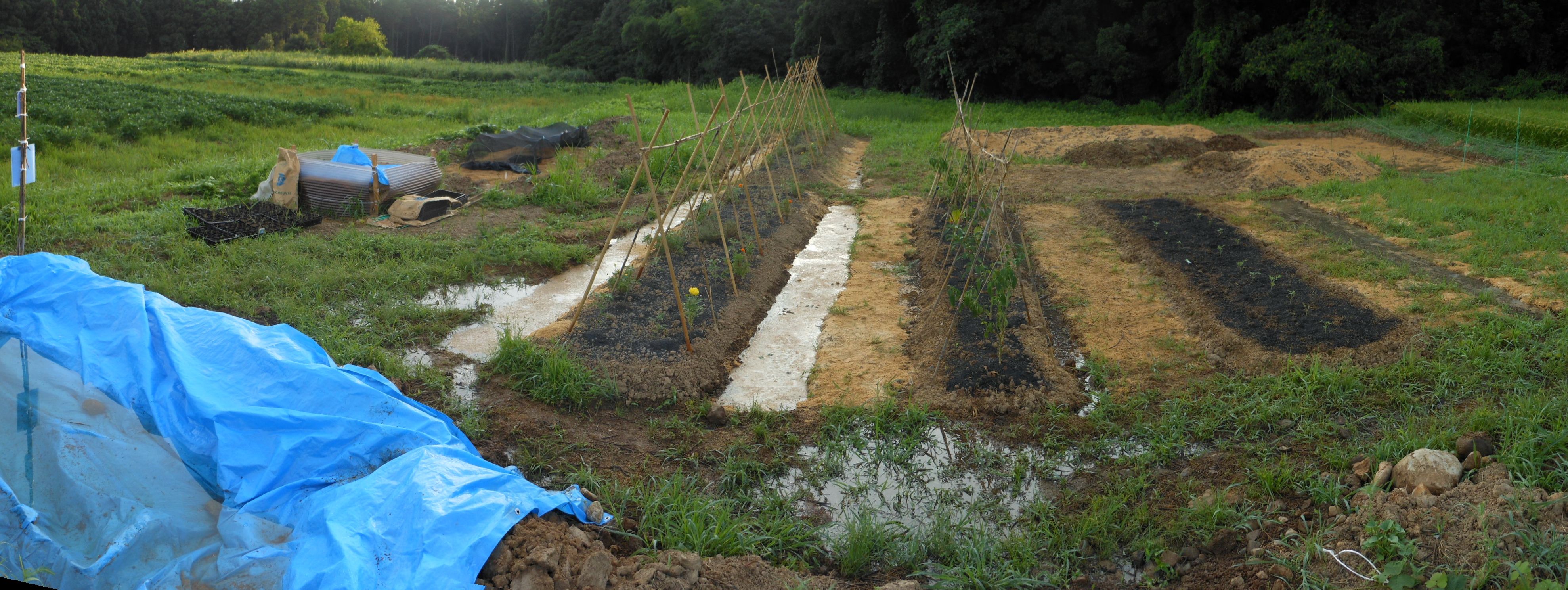 いつもは排水用の溝を開放して畑の中に水が大量に入らないように
