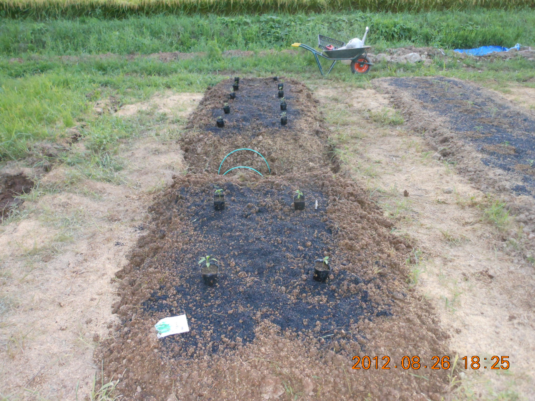 ここに伊勢ピーマンを2列で合計14株定植です。