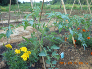 トマトの誘引は背丈の大きいものだけにしておきました。