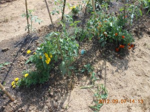 トマトの芽かきも誘引したあとしばらくしてなかったのでやっておきました。