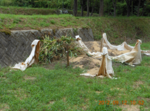 今日はあぜシートがあった場所を草刈りして斜めですが畝を作りました。
