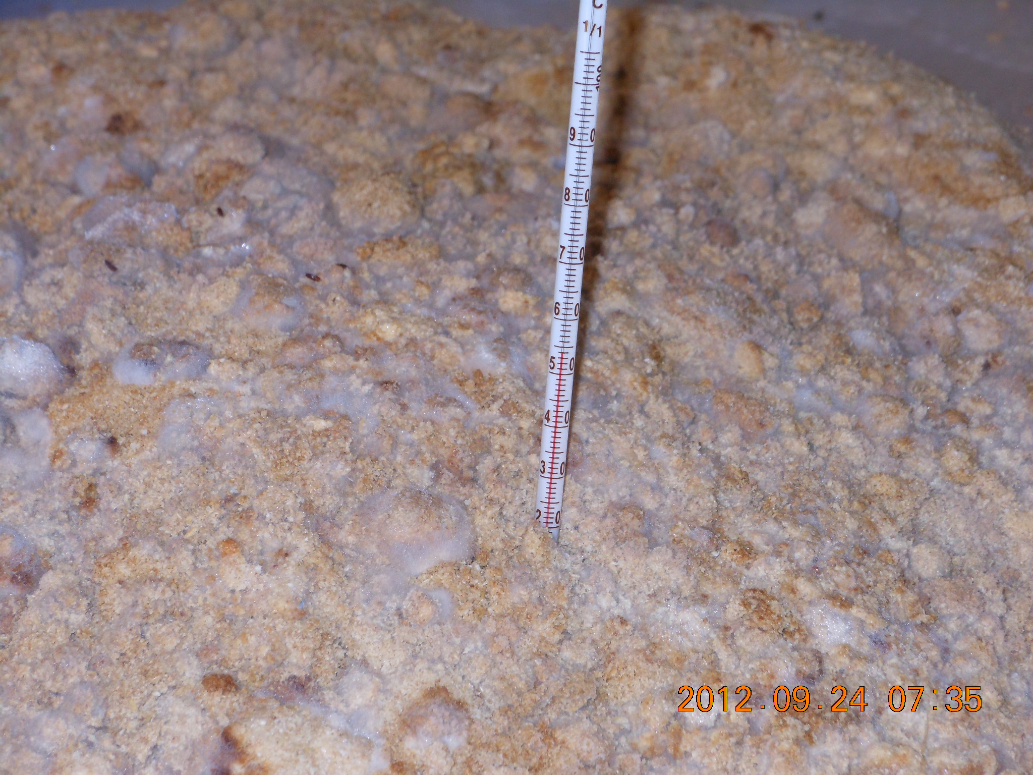 2012年9月27日 / 最終更新日時 : 2019年9月12日 shimasakimitsunori 日々是好日 発酵米ぬかの最初の切り返し 2012-09-24 材料が米ぬかだけなので、今までの経験から そんなに急に温度が上がらないと思ってました。 それで昨日は様子を見ることはしませんでした。 2日後の今日見てみたら・・・・54度ありますね。 麹菌もほどよい具合に増えてます。 それで切り返しをしておきました。 切り返しをしていて気になったことは、 コオロギが集まっていたことです。 さて、ここからはいつもだったら半日ほどシートを開放しておいてから 閉めるんですが、今回は試しにこの状態で明日の朝まで 置いておくことにしました。 #米ぬかに水とはんぺんだけのぼかし肥料 FacebookXBlueskyHatenaCopy コメントを残す コメントをキャンセルメールアドレスが公開されることはありません。 ※ が付いている欄は必須項目ですコメント ※ 名前 ※ メール ※ サイト 次回のコメントで使用するためブラウザーに自分の名前、メールアドレス、サイトを保存する。 上に表示された文字を入力してください。 Δ