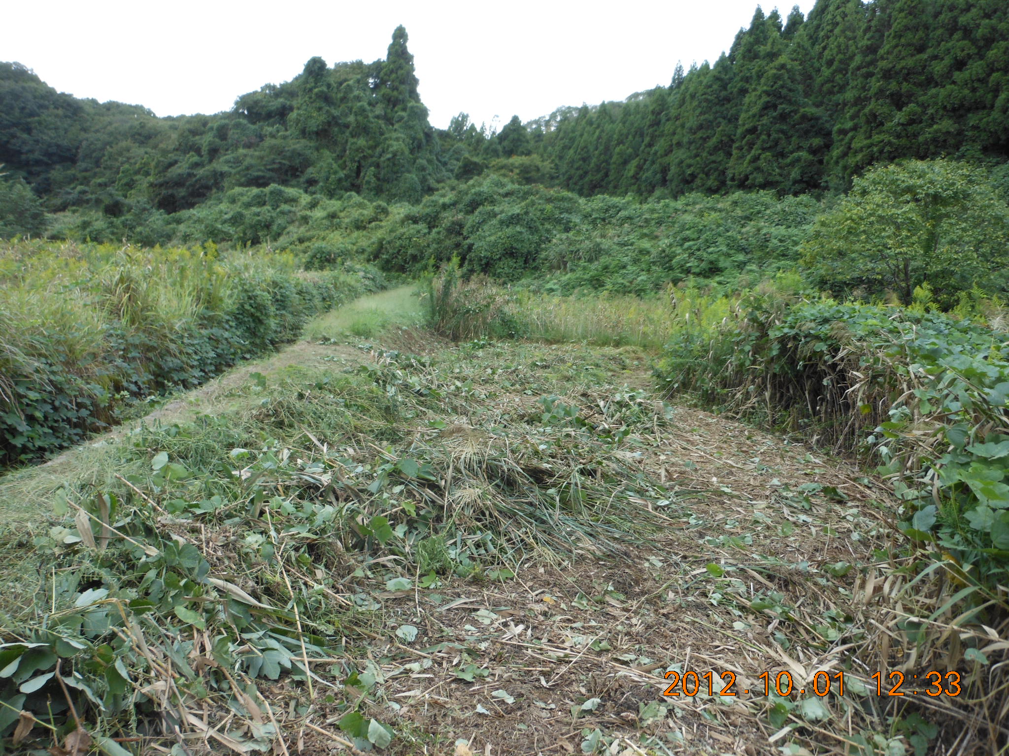 台風も去ったことなので5号圃場の草刈りです。