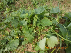 野良生えのかぼちゃ?の実がついていたので切らずに残しました。