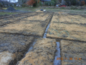 もみ殻を入れる作業が終われば次は畝立てに入ります。