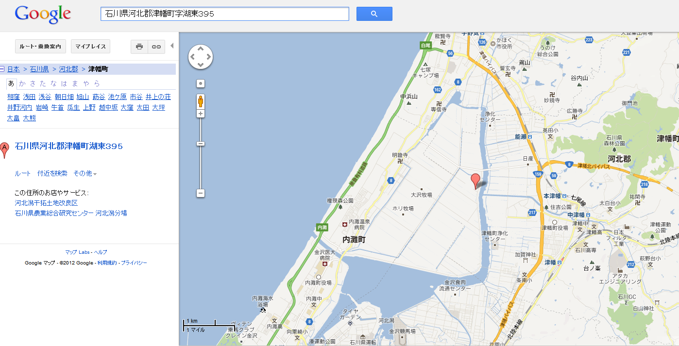 今いることろは「石川県農林総合研究センター」で住所は金沢市才田戊295-1