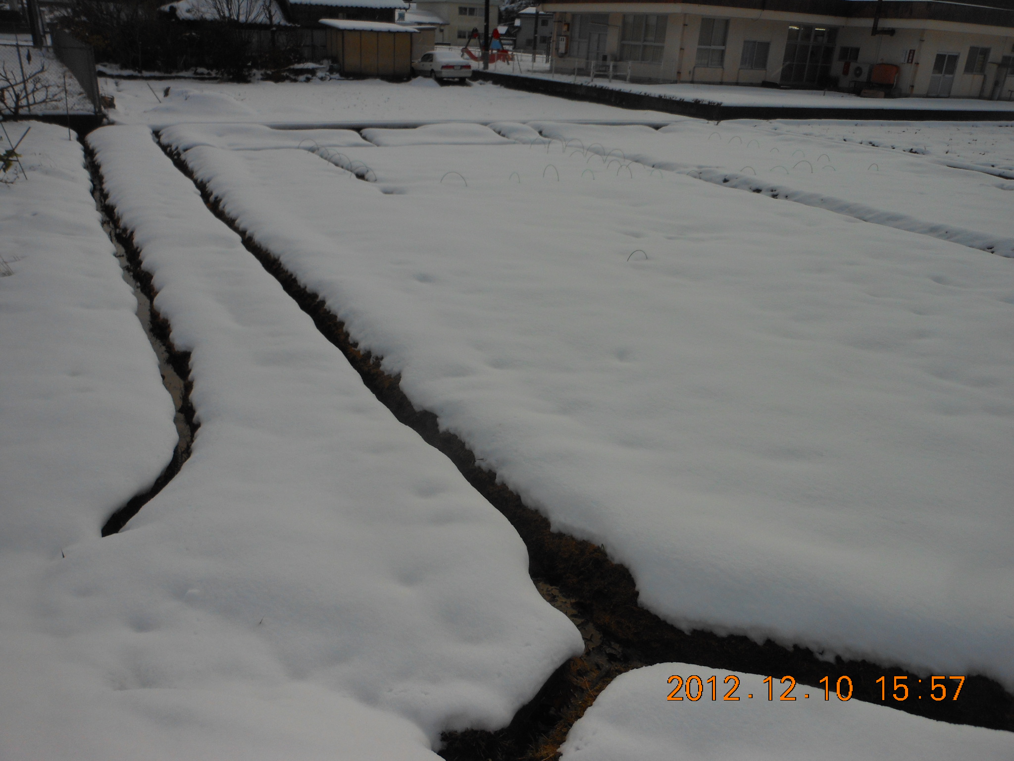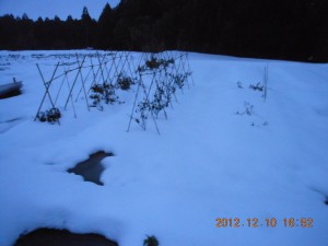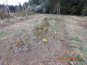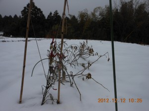 なつのこまトマトは赤くなる前に雪に埋もれました。