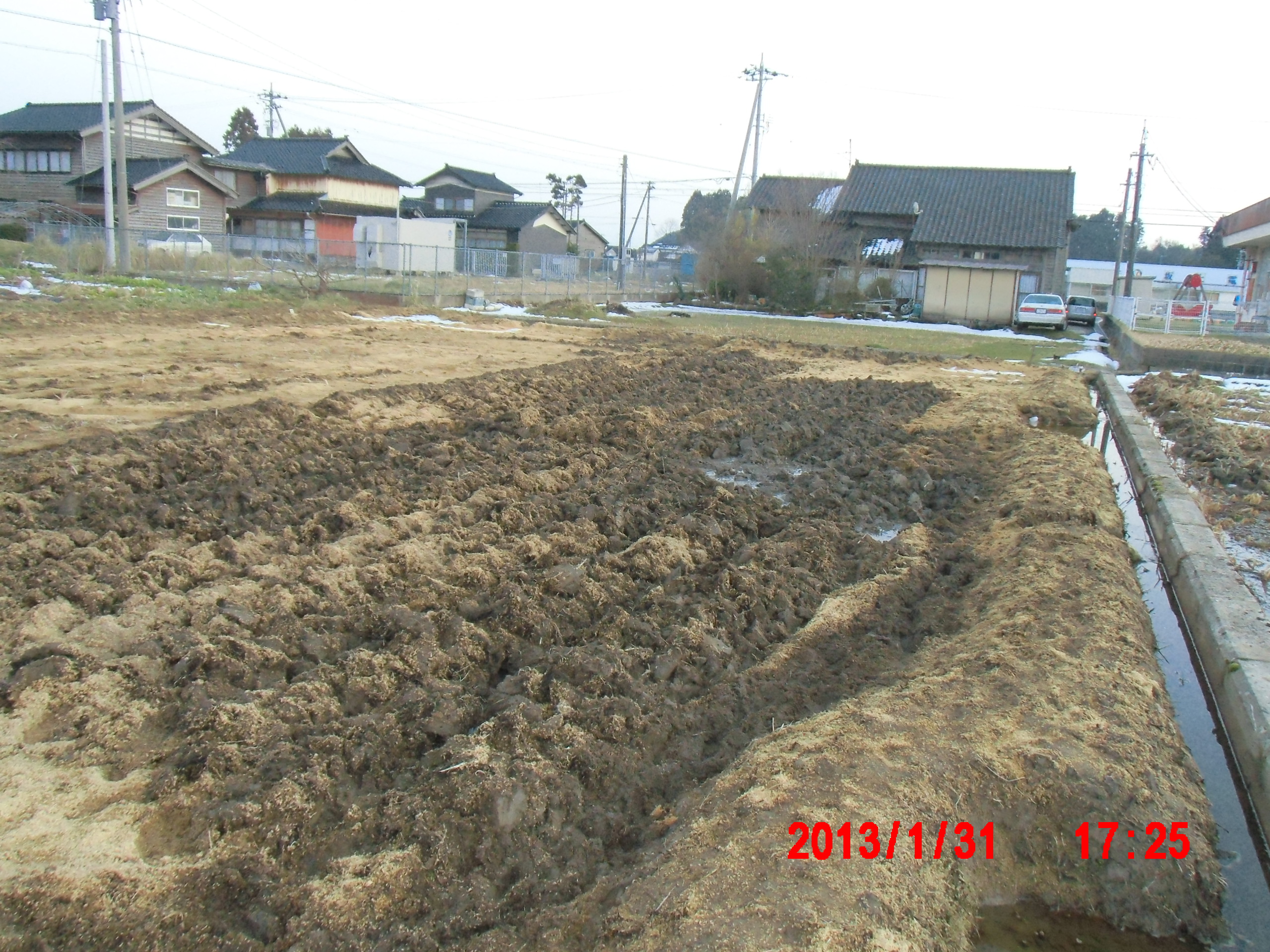 6号ほ場で荒起し(2)とトレンチャー 2013-01-31