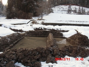 1号ほ場でわさび床作り(その2) 2013-02-14