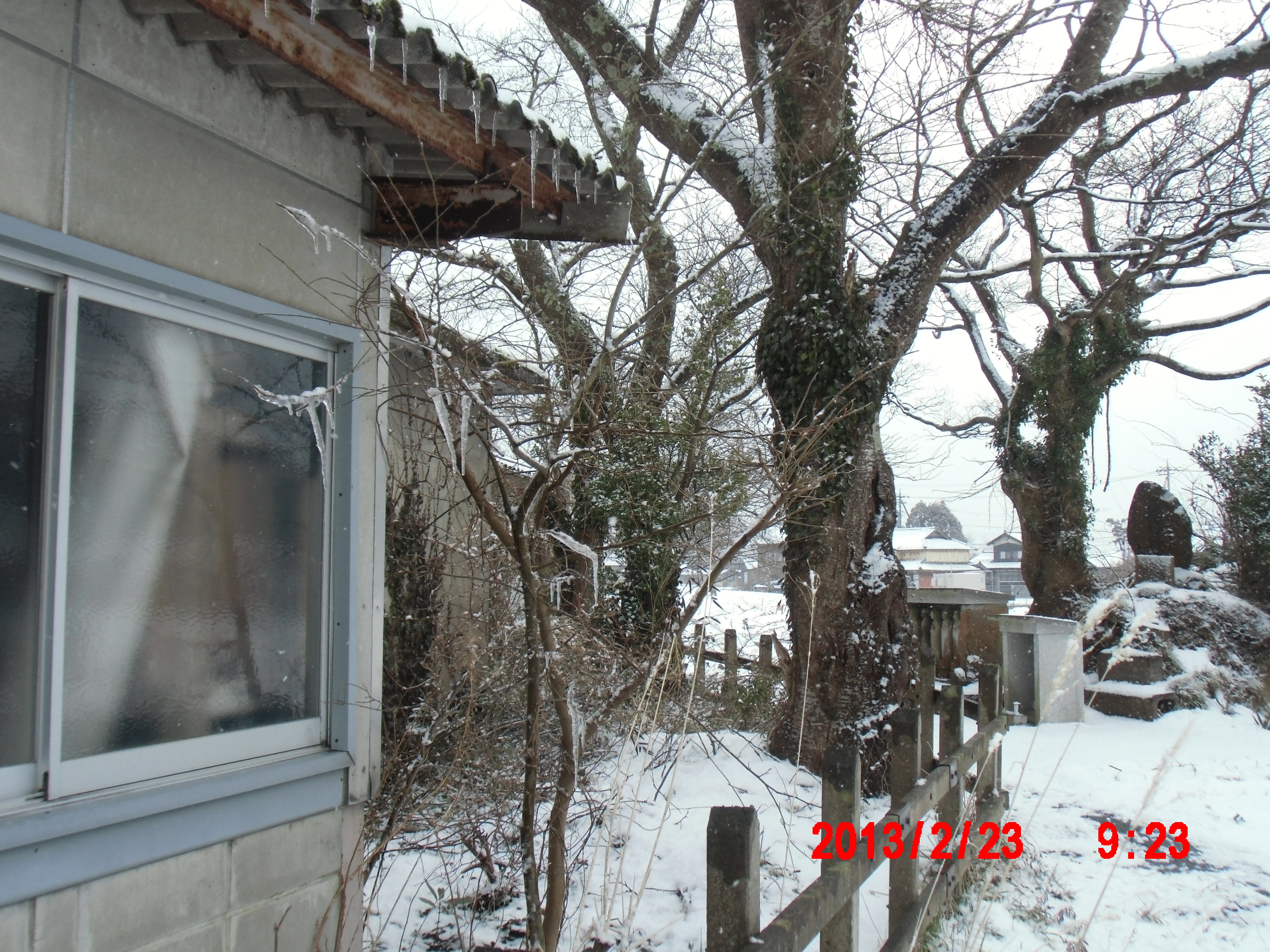 ここ数日寒い日が続いたので木の枝につららが出来てました。