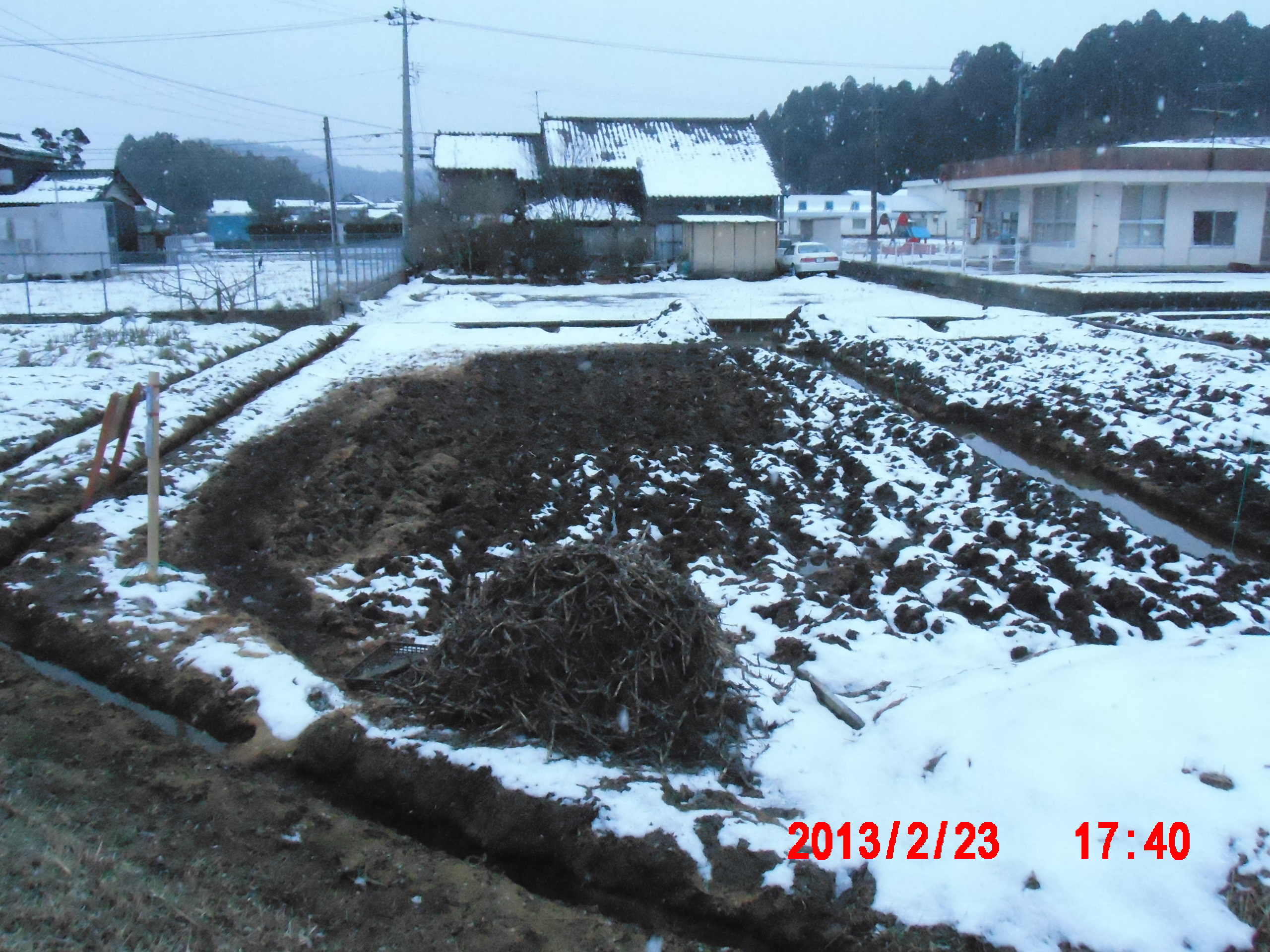 重湿田の粘土質の土壌を鍬で40~50センチ掘り起こすのは思った以上に大変でした。