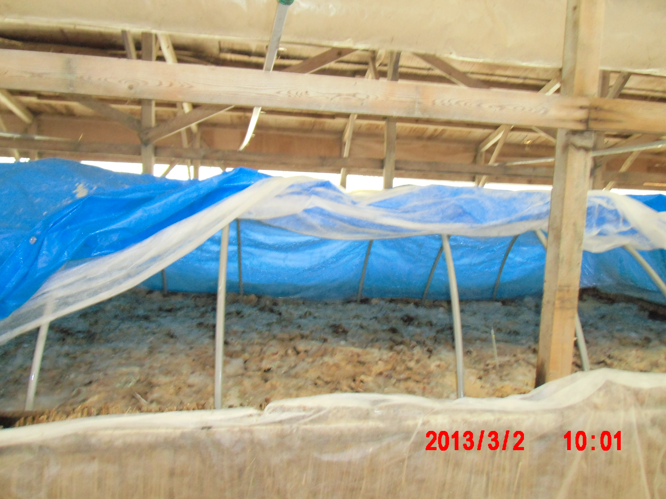 踏み込み温床の様子が気になったので見て来ましたが、雑草が芽を出してるし。