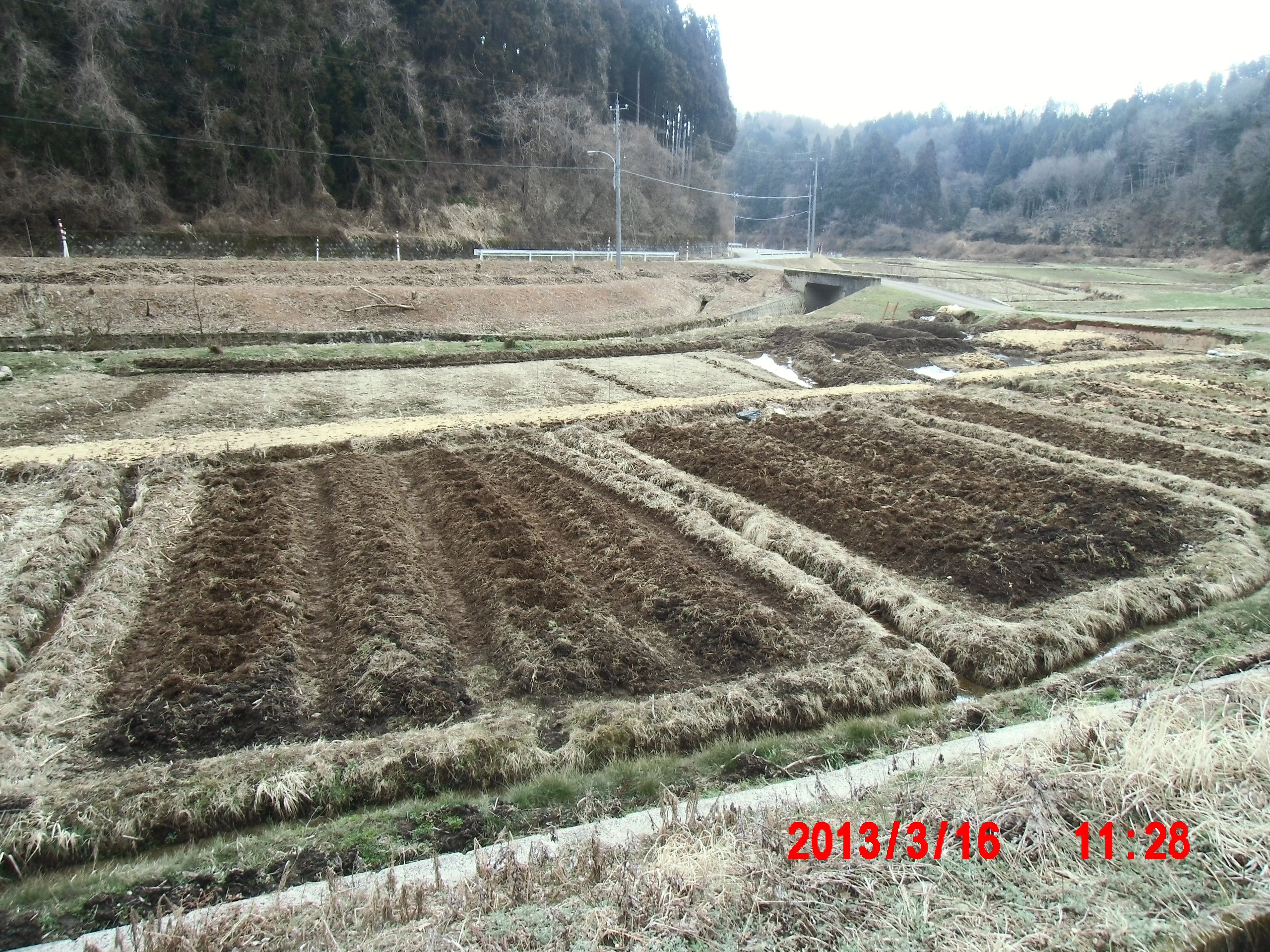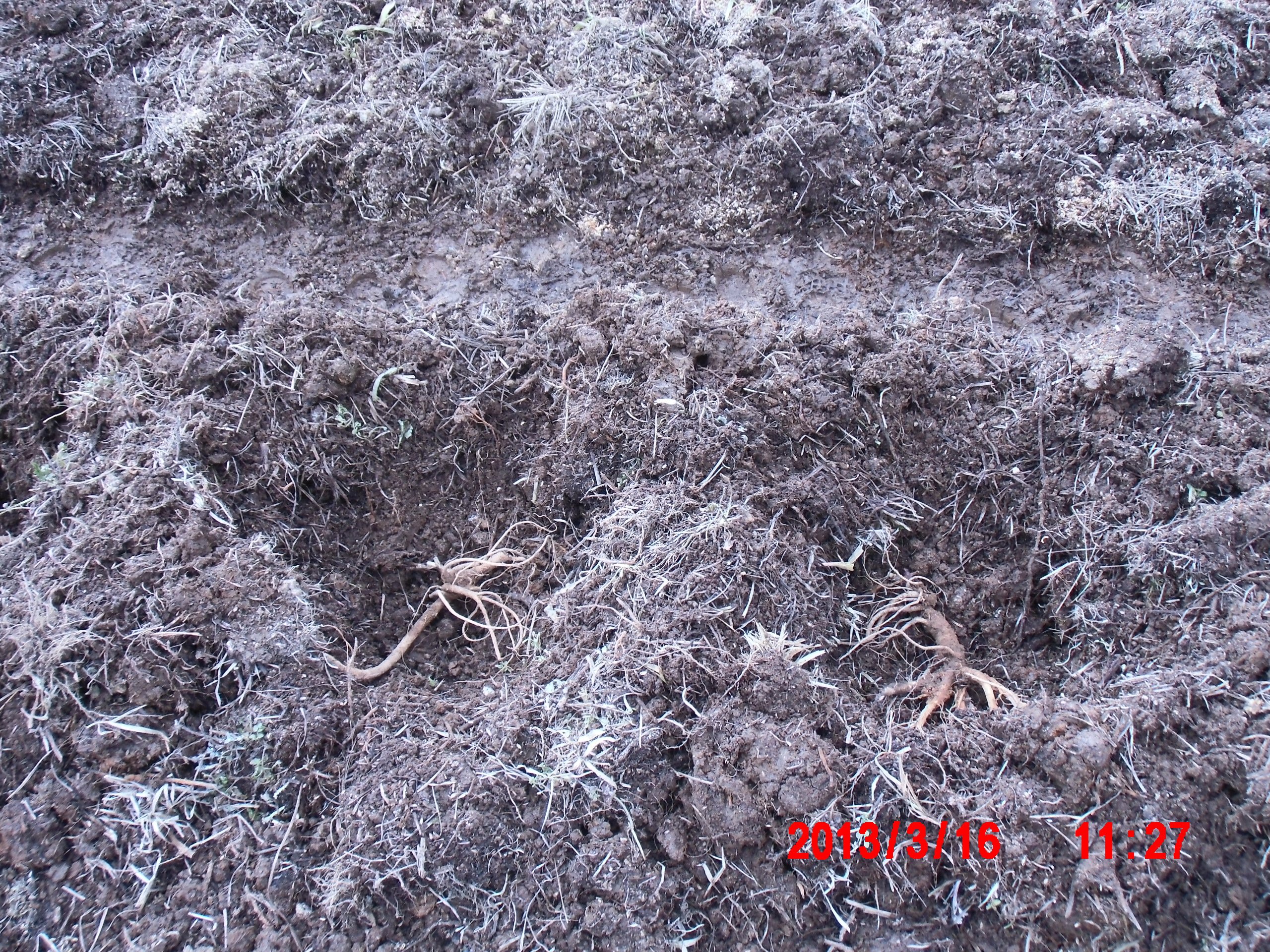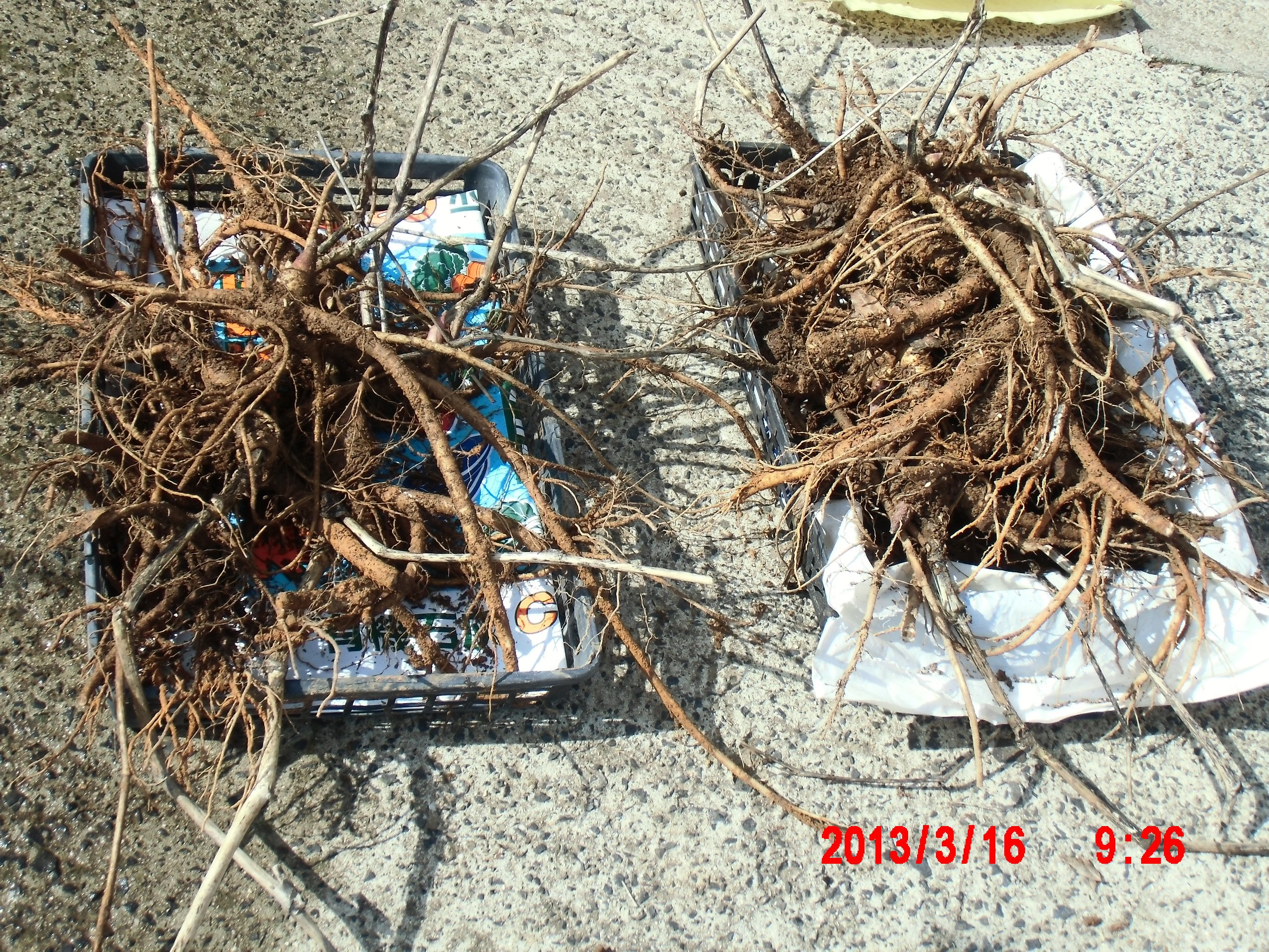 家の庭で仮置きしていた苗を掘りあげて1号圃場に定植しました。