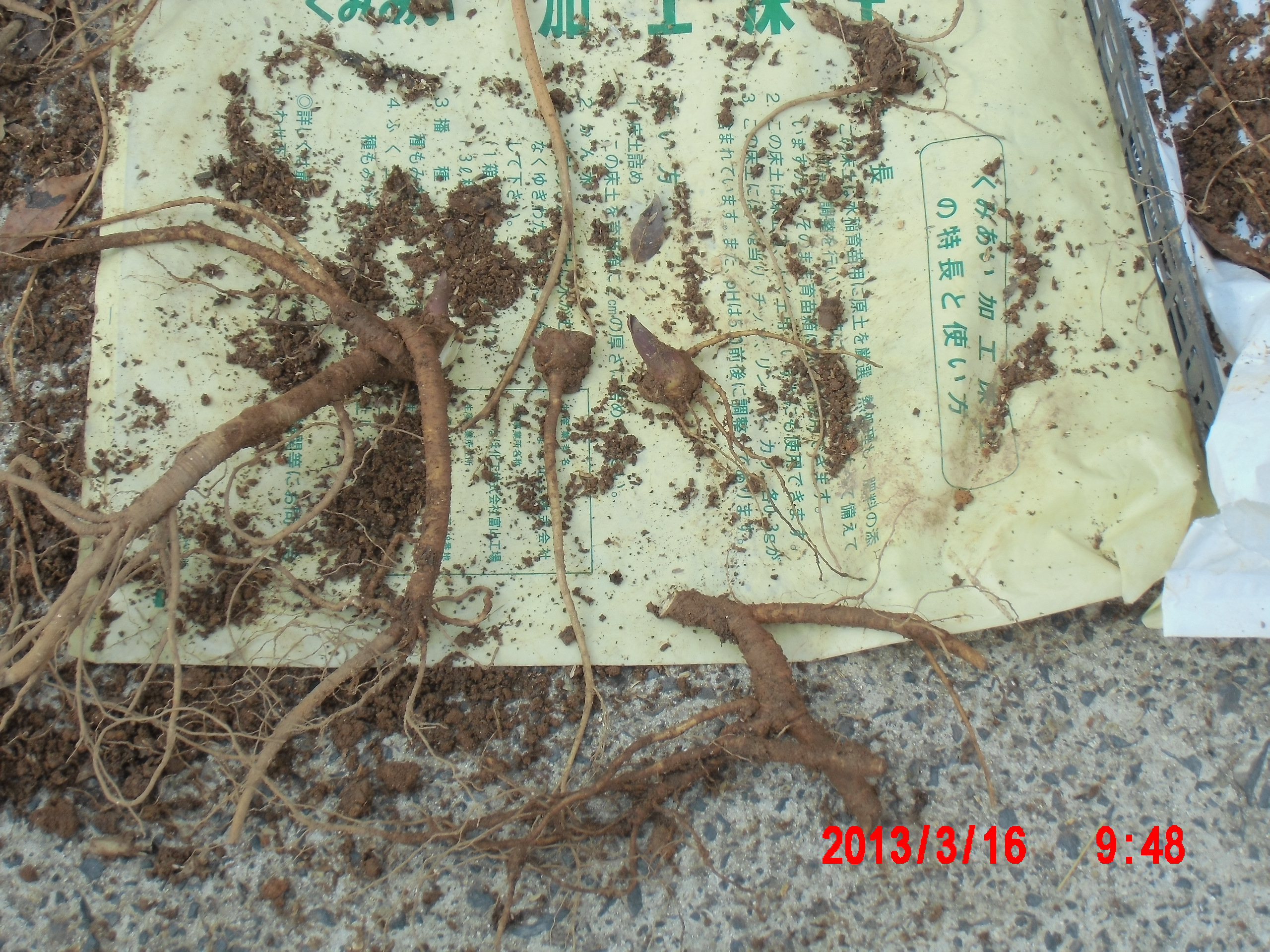 大きい芽が2つある株があったので切り分けることに・・・・・・