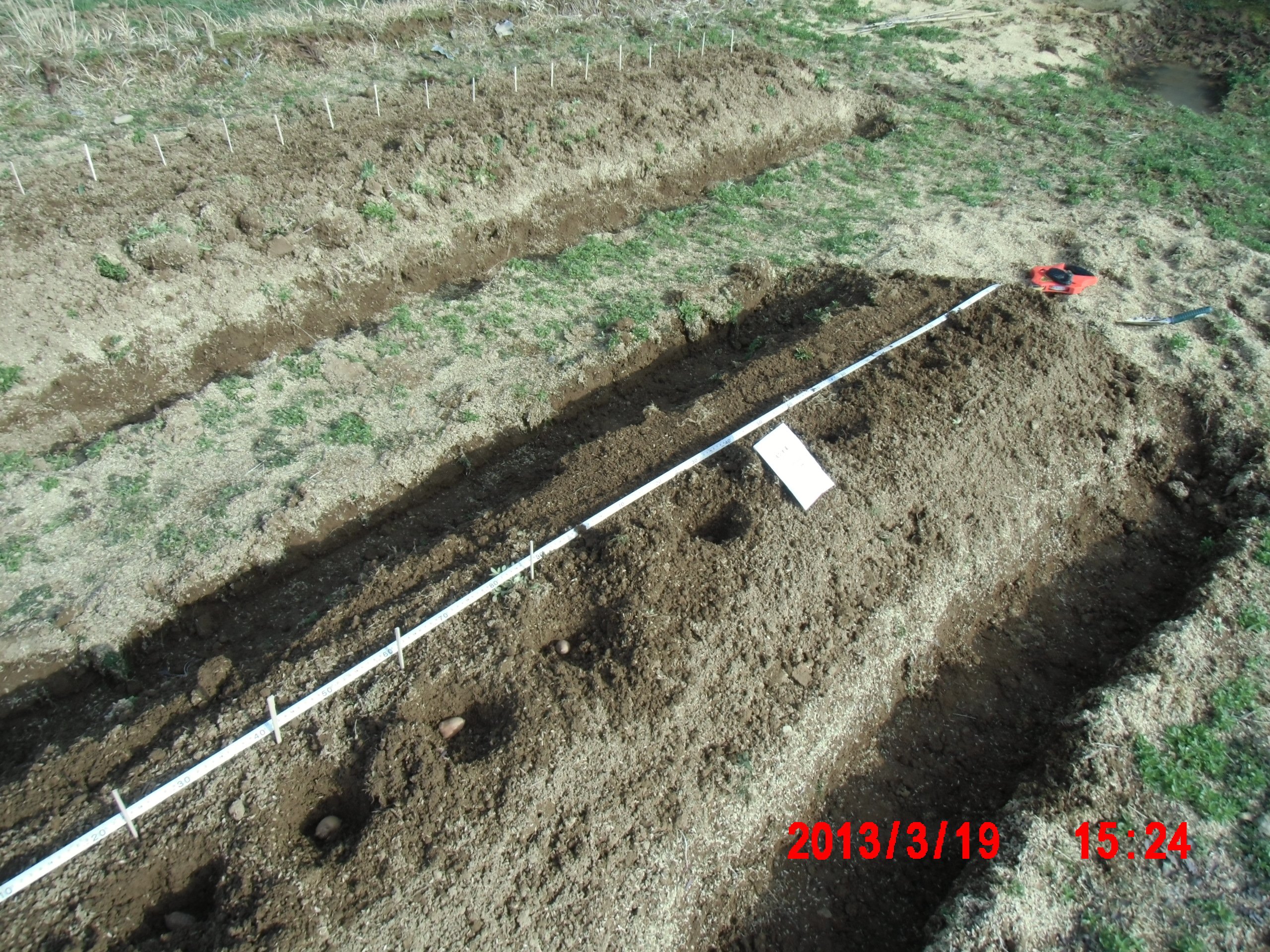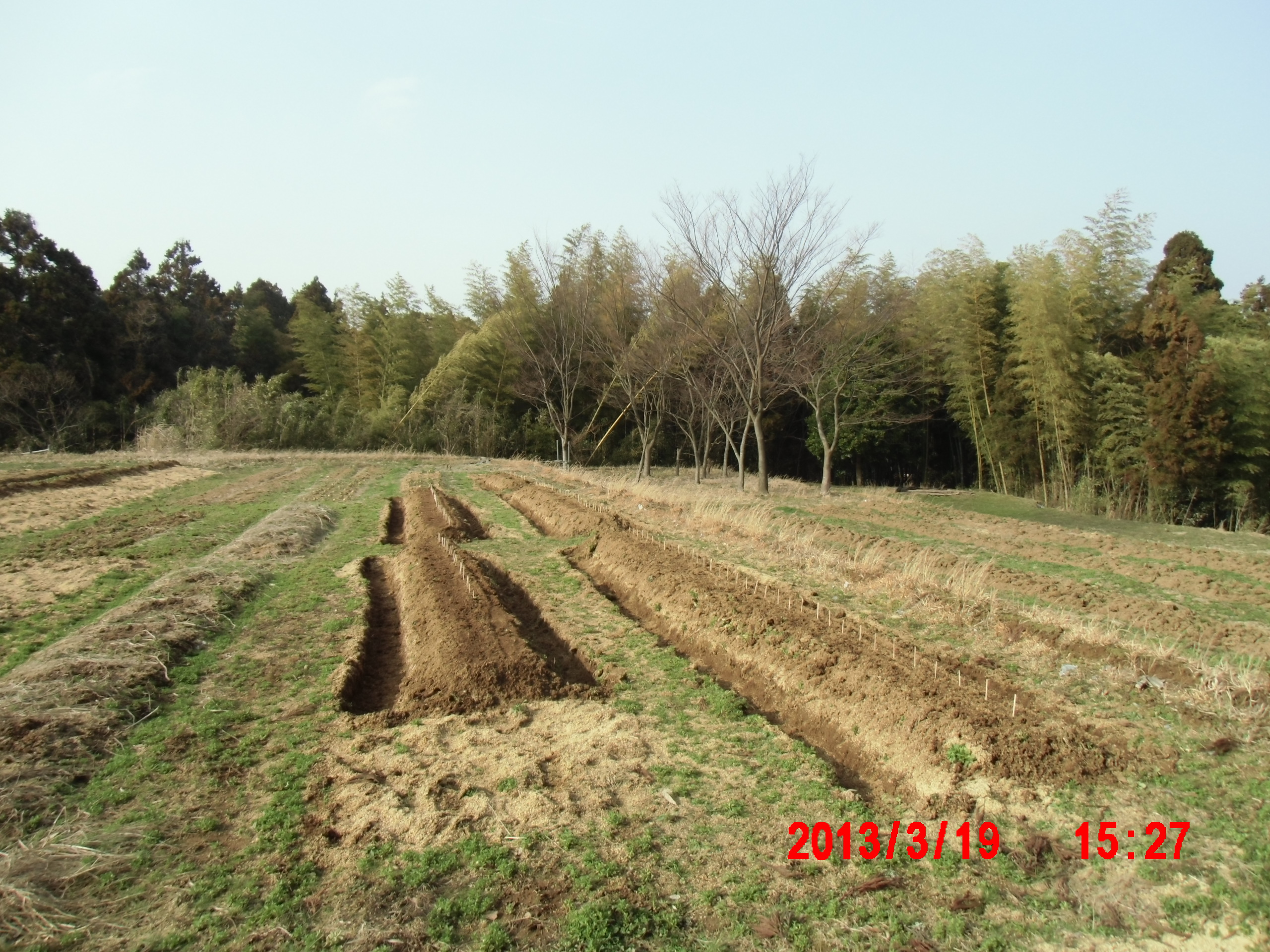 2013年3月21日 / 最終更新日時 : 2019年9月26日 shimasakimitsunori 日々是好日 アピオスの定植(その2) 2013-03-19 晴れたので2号圃場に定植しました。 メートルソルゴーは平均気温が15度以上で播種するので 実際には5月に入ってからです。 それでまき溝だけ掘っておきました。 畝の余った部分は「えびす草」をまいておきました。 FacebookXBlueskyHatenaCopy コメントを残す コメントをキャンセルメールアドレスが公開されることはありません。 ※ が付いている欄は必須項目ですコメント ※ 名前 ※ メール ※ サイト 次回のコメントで使用するためブラウザーに自分の名前、メールアドレス、サイトを保存する。 上に表示された文字を入力してください。 Δ