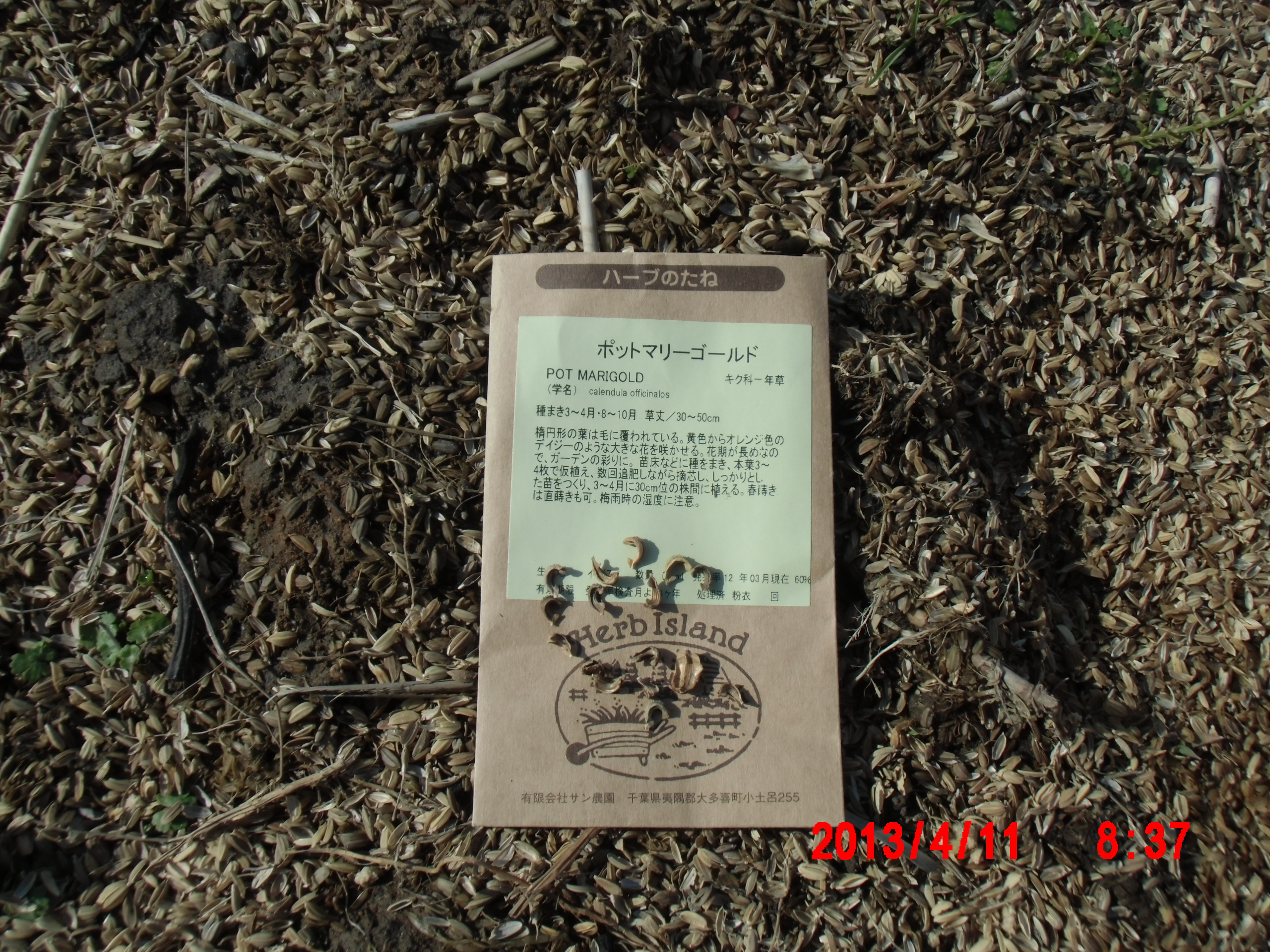 縁沿いに30~40センチ間隔で1粒まきしましたが、