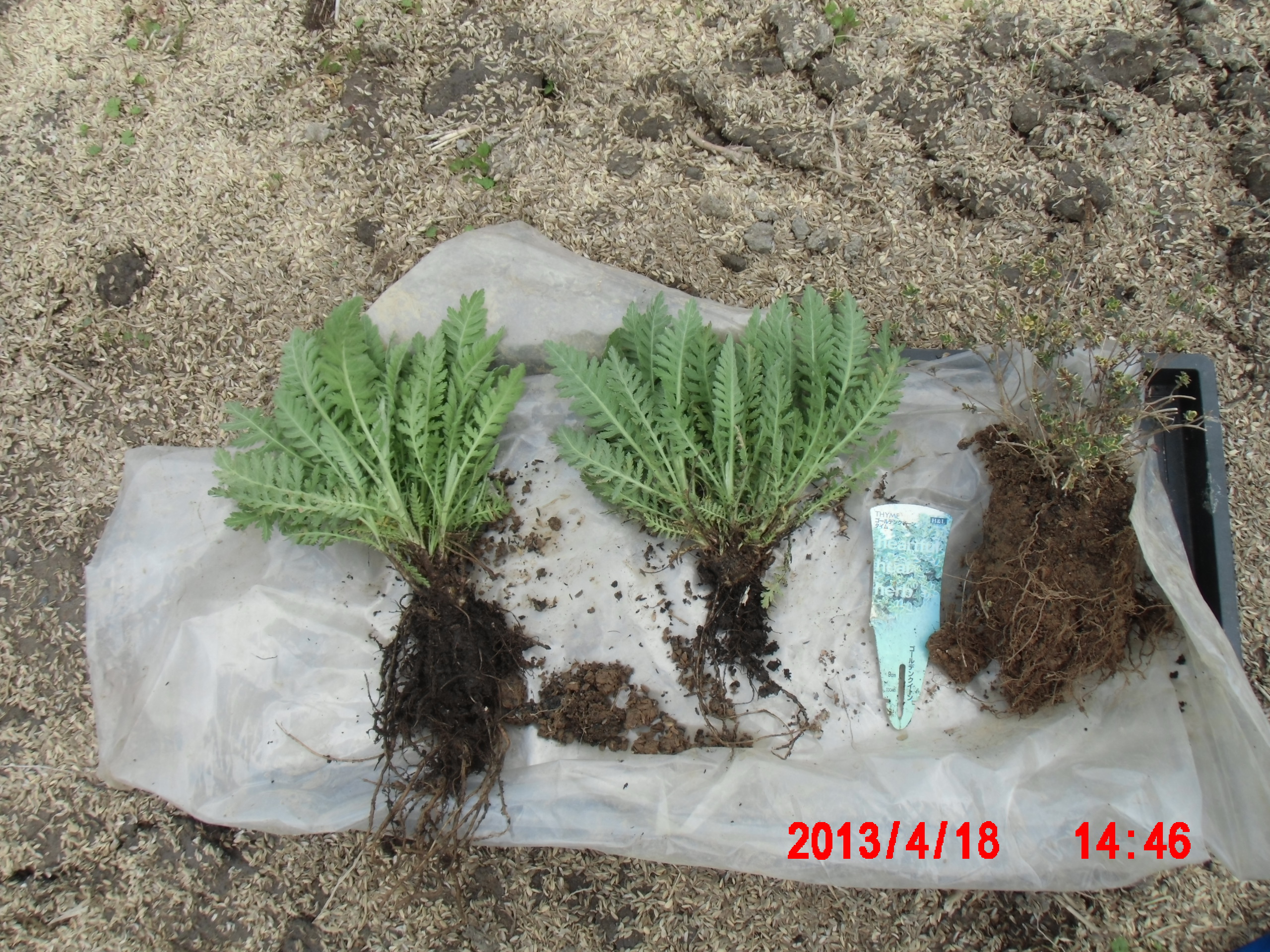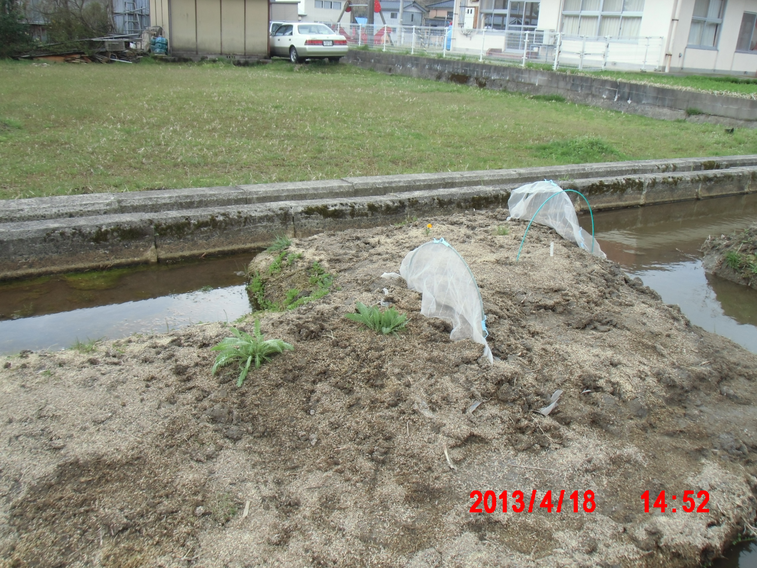 雪に埋もれた状態でも、もみ殻マルチで無事に越冬してくれました。