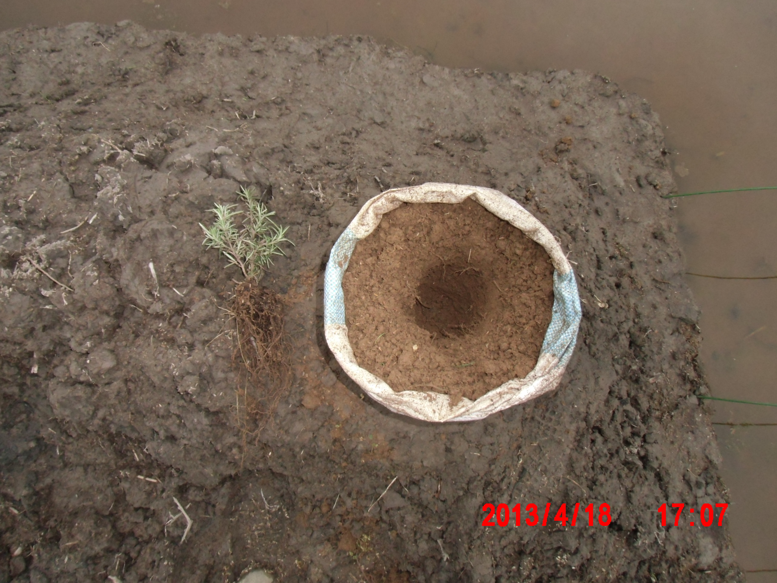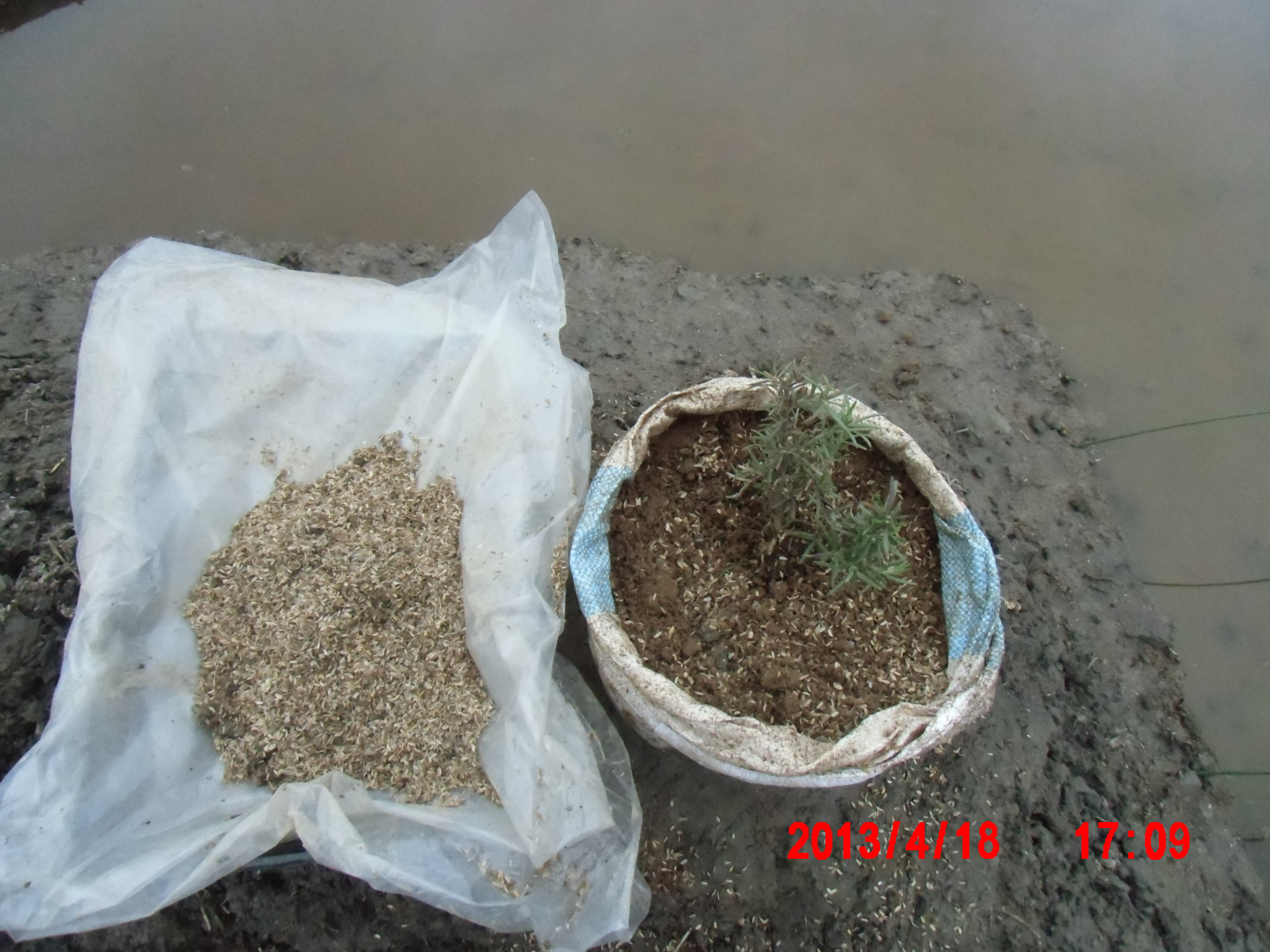 ただそれだと高く盛ると土が崩れるのと通気性も考慮して土のう袋を使いました。