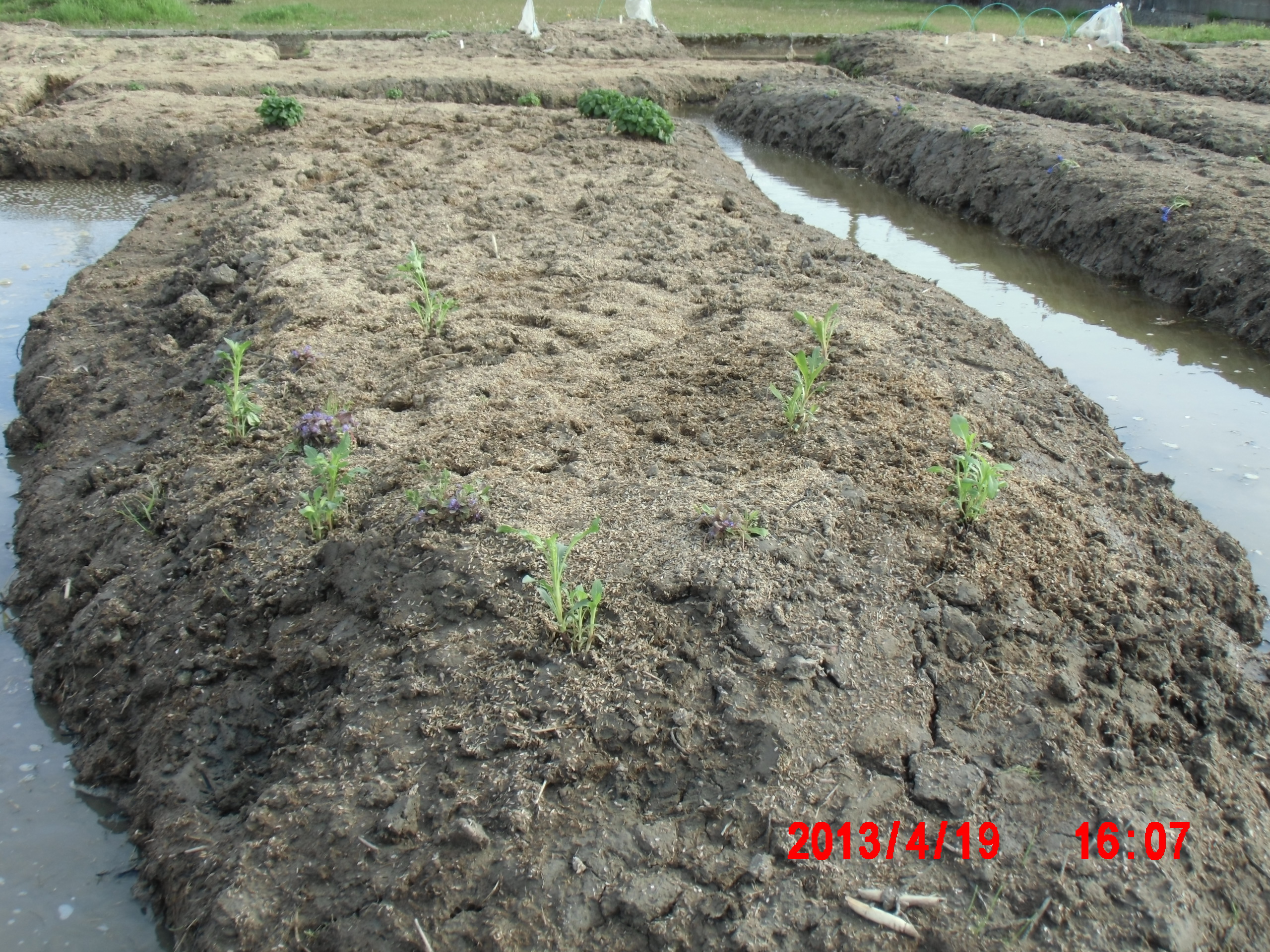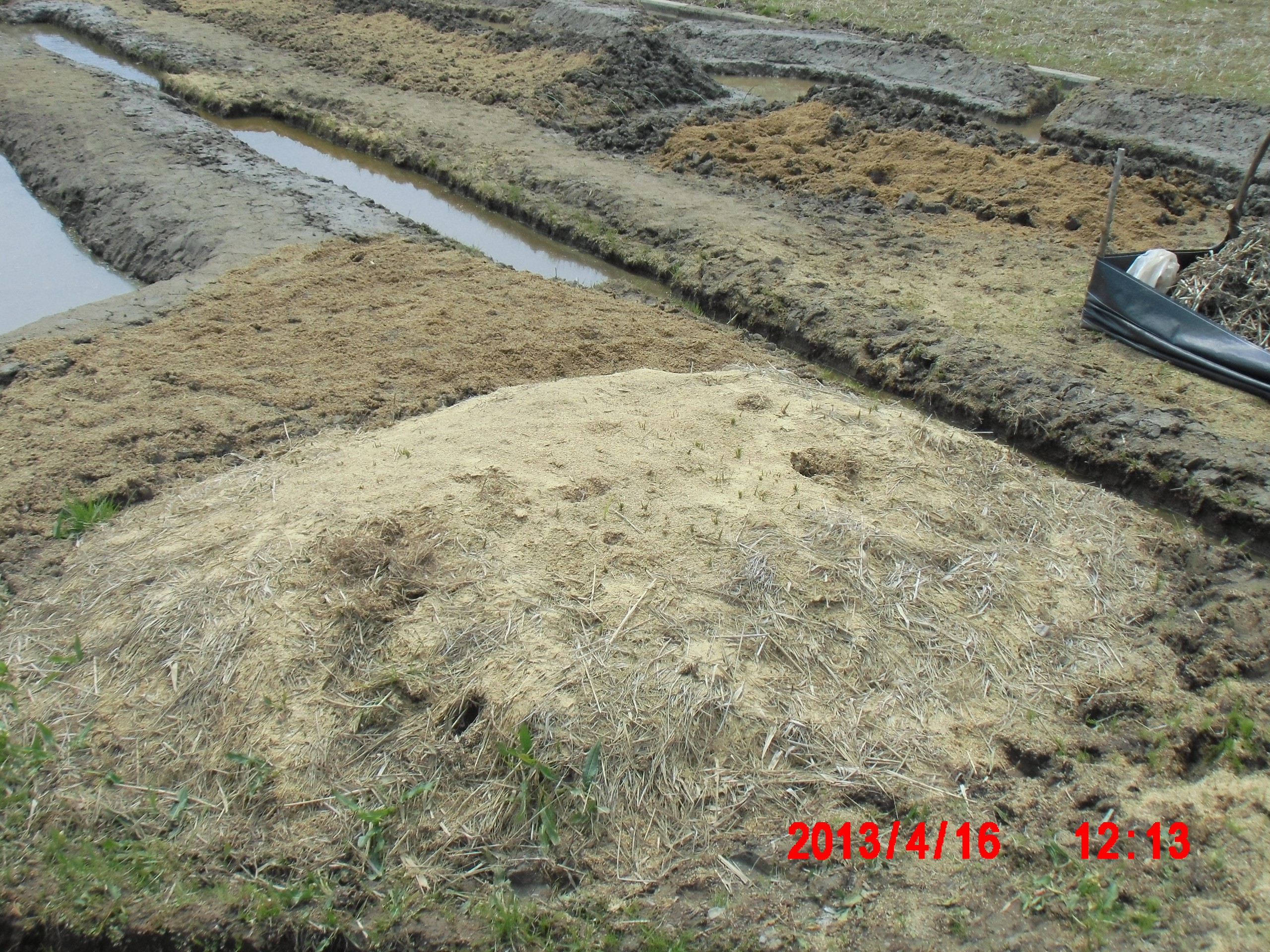 今日は他には失敗した育苗箱の育苗培土?を3号圃場の畝にまきました。