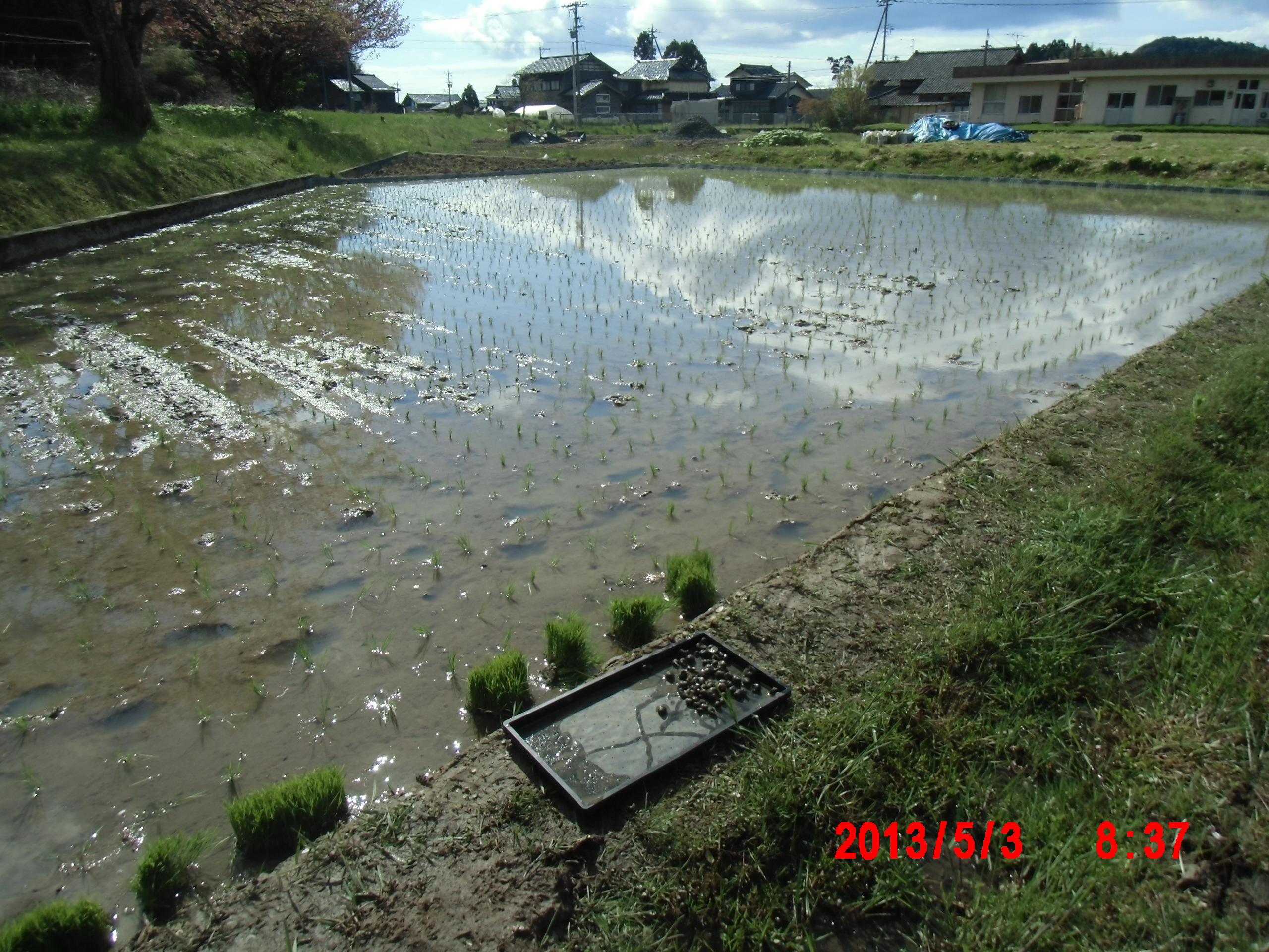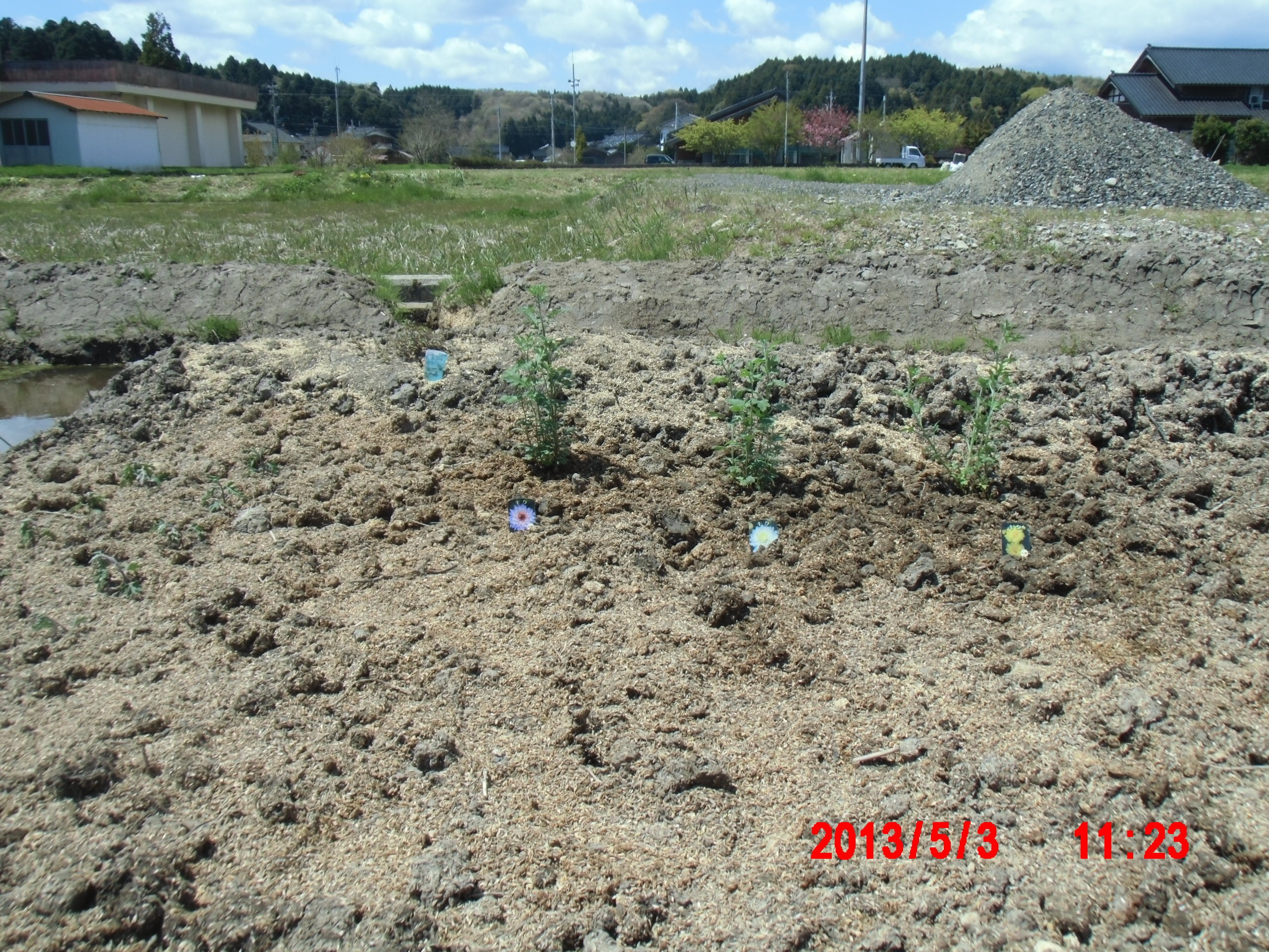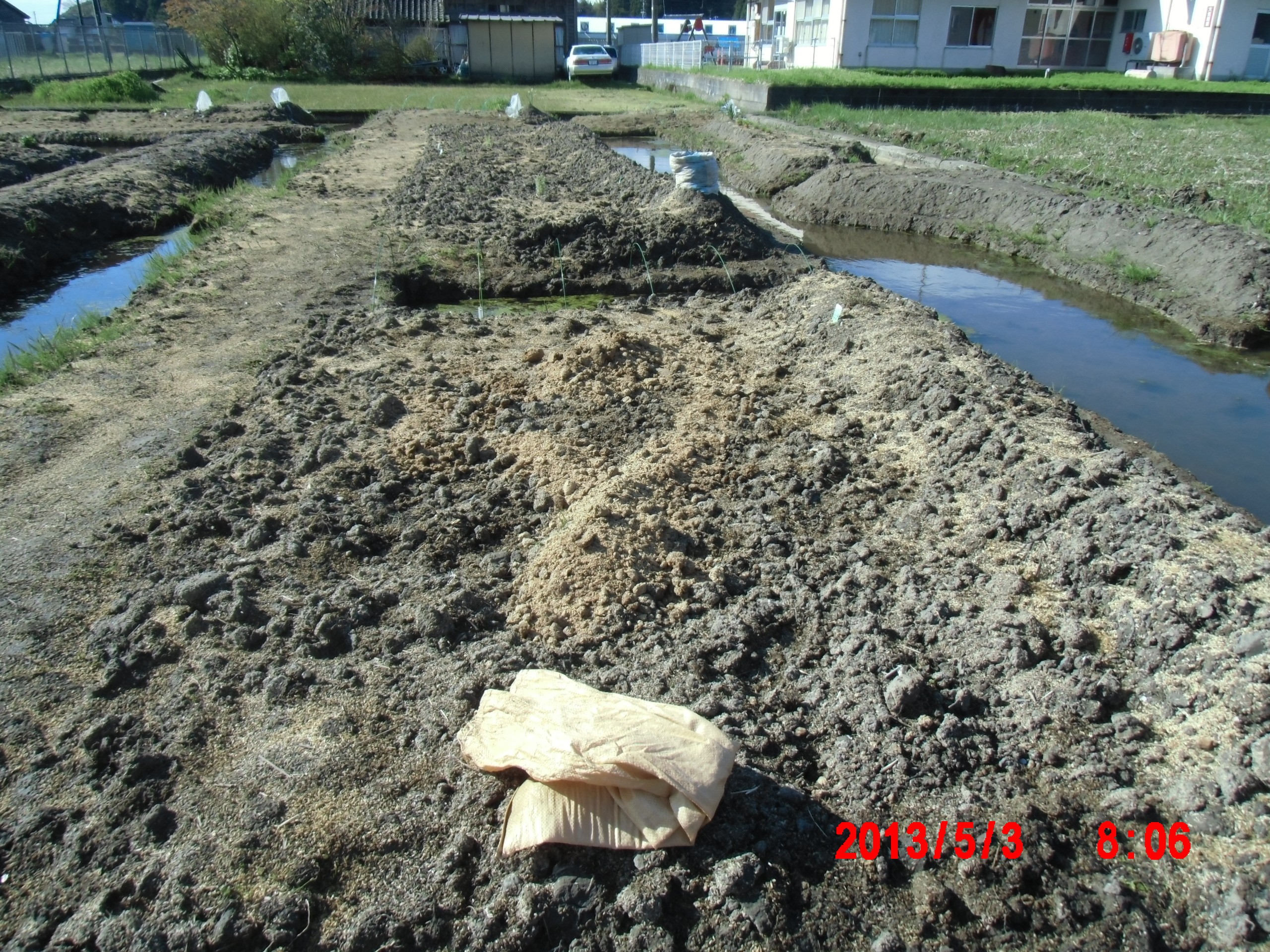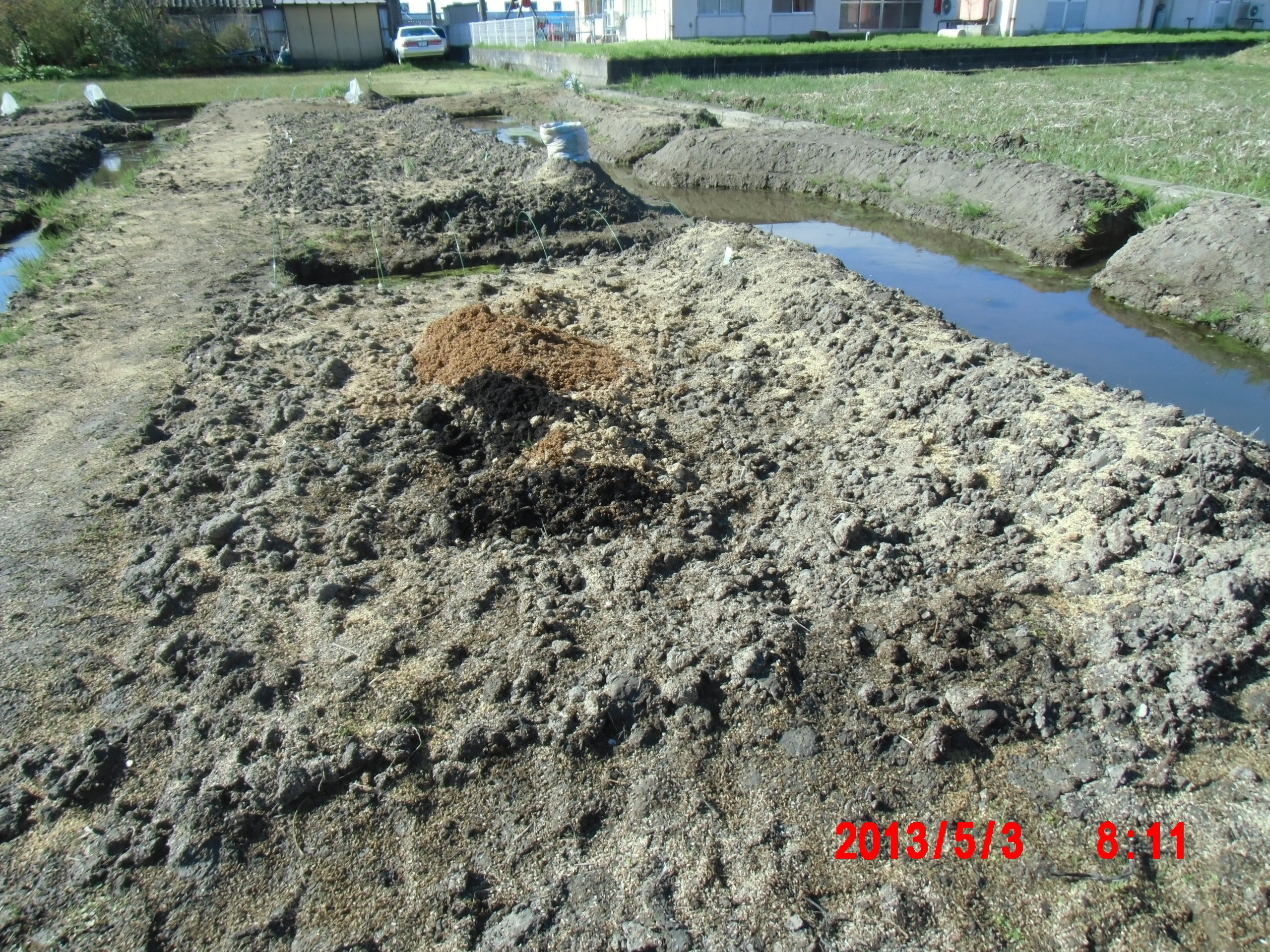 植え付ける場所にはこの間の育苗箱への種まきに使った材料の残りを投入。