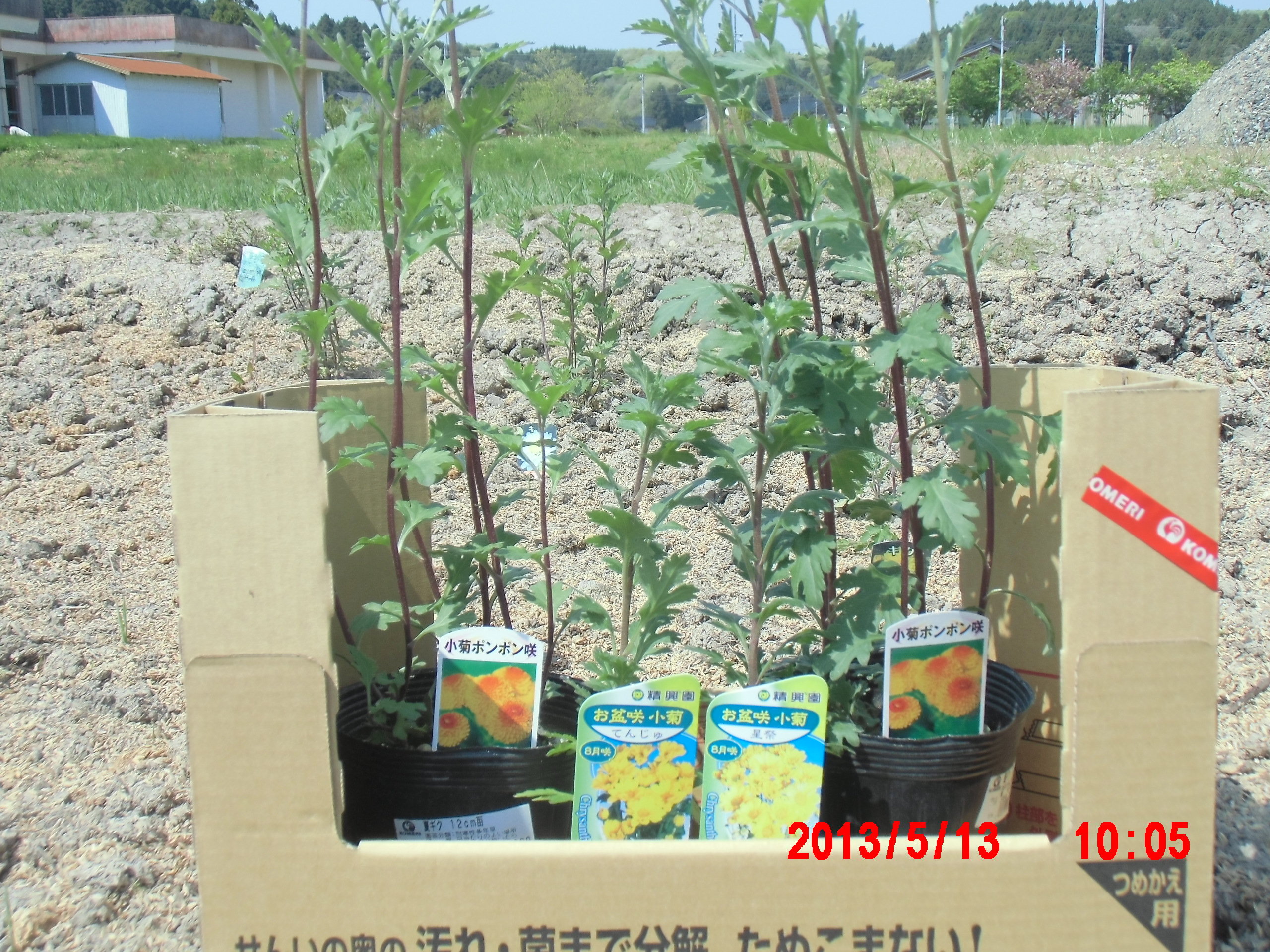 刈り敷きマルチをする前に「菊の苗」を追加で植える作業と摘心をした枝を挿し芽にしてました。