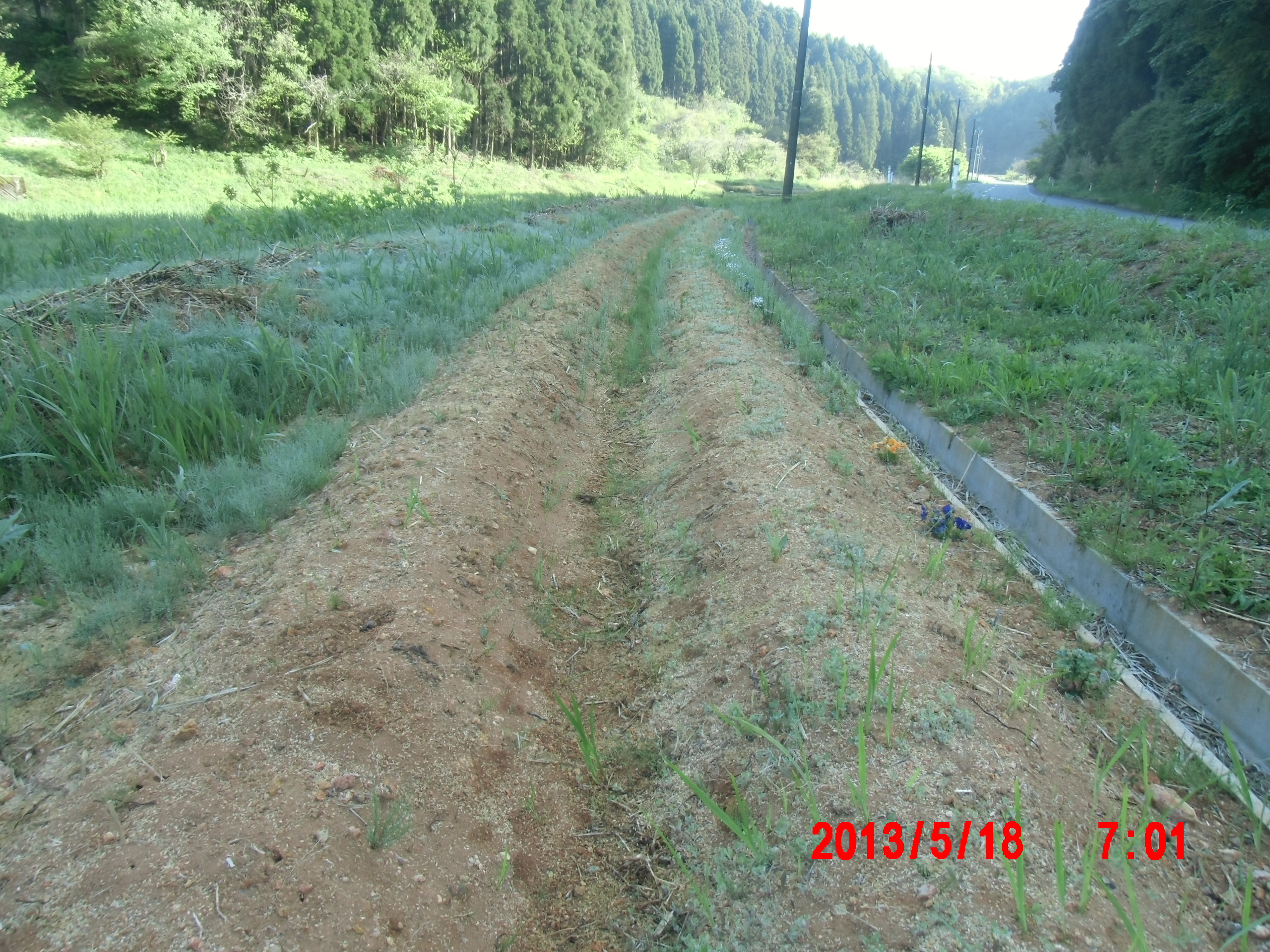 うまく発芽した2号圃場の方に追加で種芋を植え付けました。