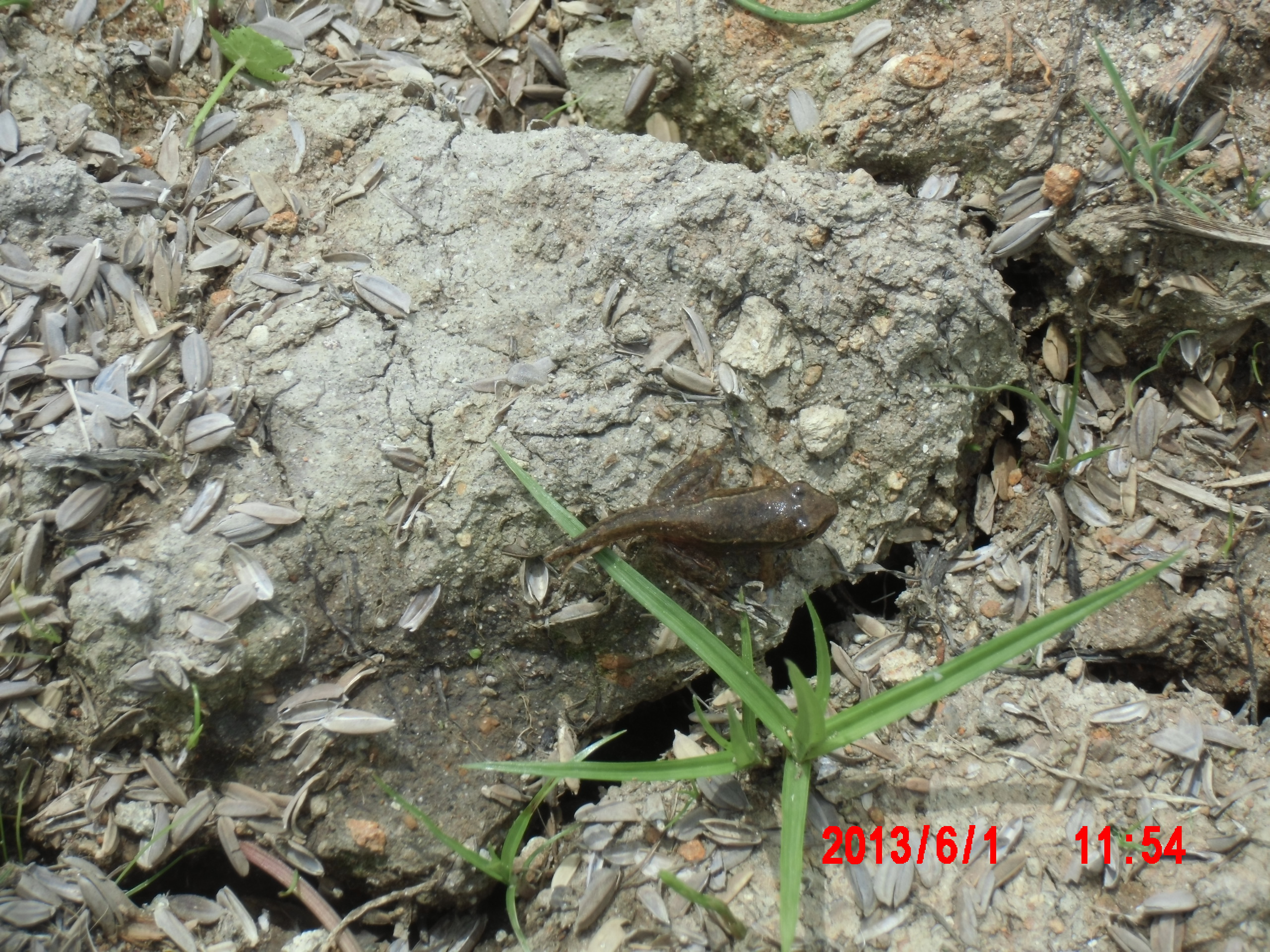 そういえば、おたまじゃくしがまだ尻尾は残ってますがカエルになりました。