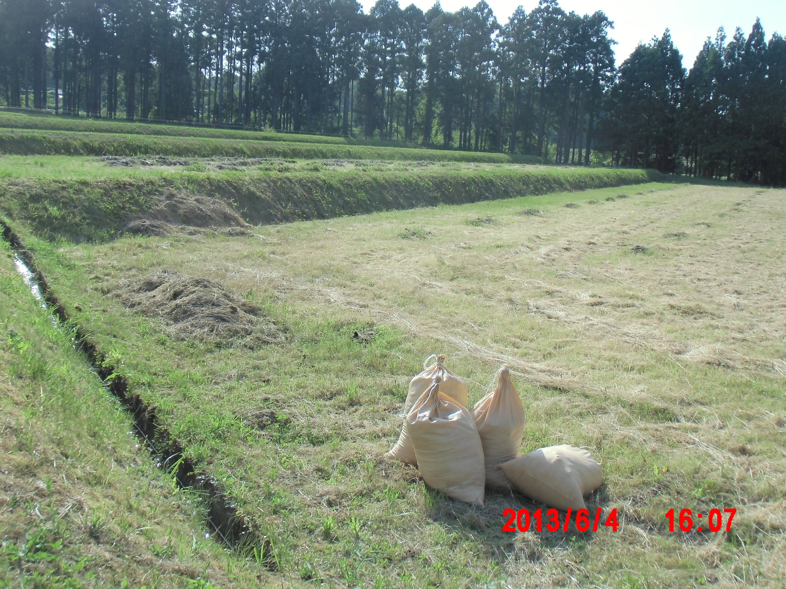 6月4日に9号圃場の下の1枚の休耕田に米ぬかを200キロほど散布しました。